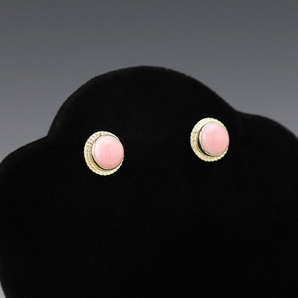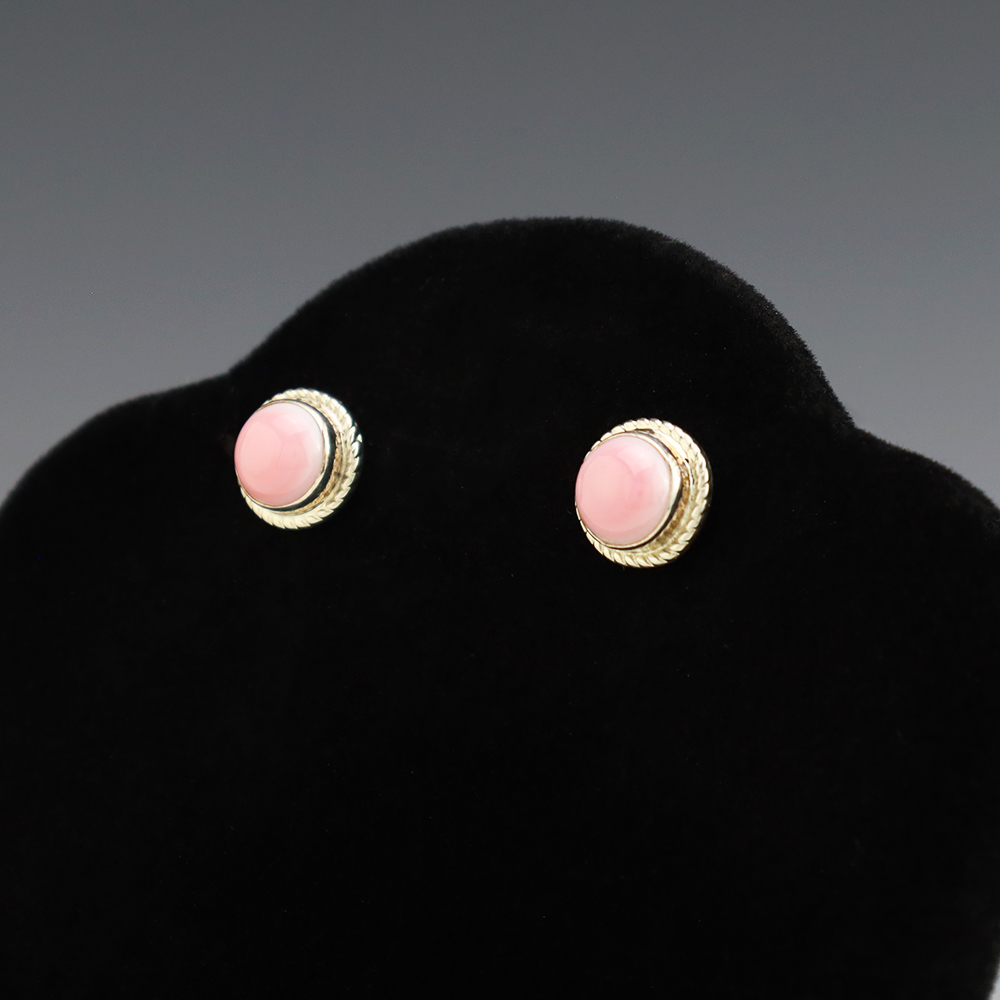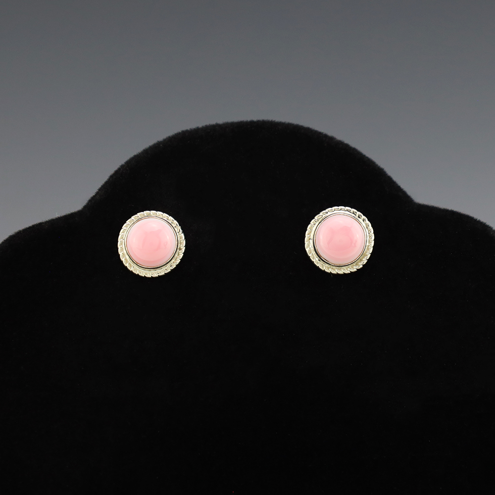 Lovely earrings hand made out of sterling silver and Pink Conch. These wonderful earrings will become a versatile accessory in your jewelry collection. Weighs 4 grams. Signed