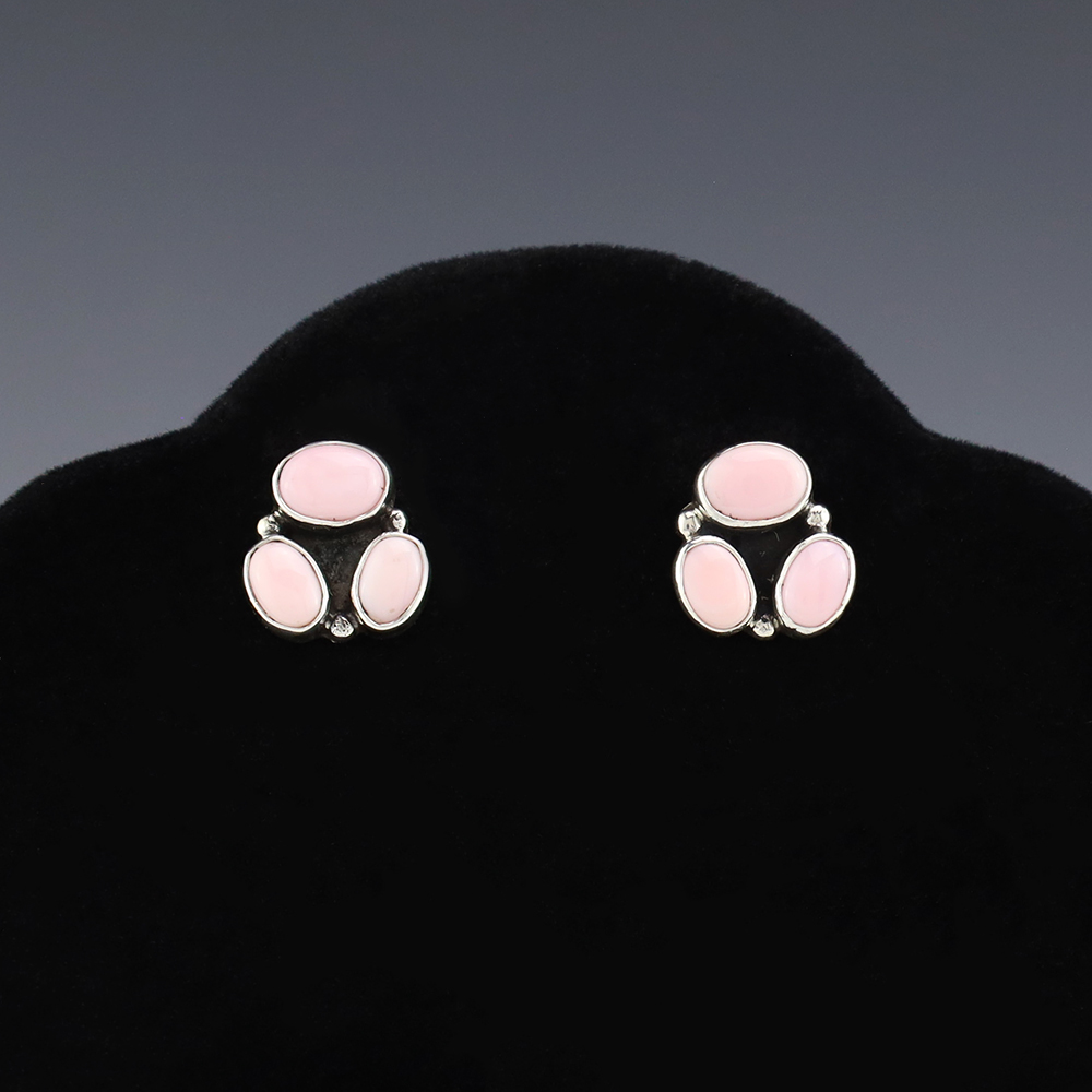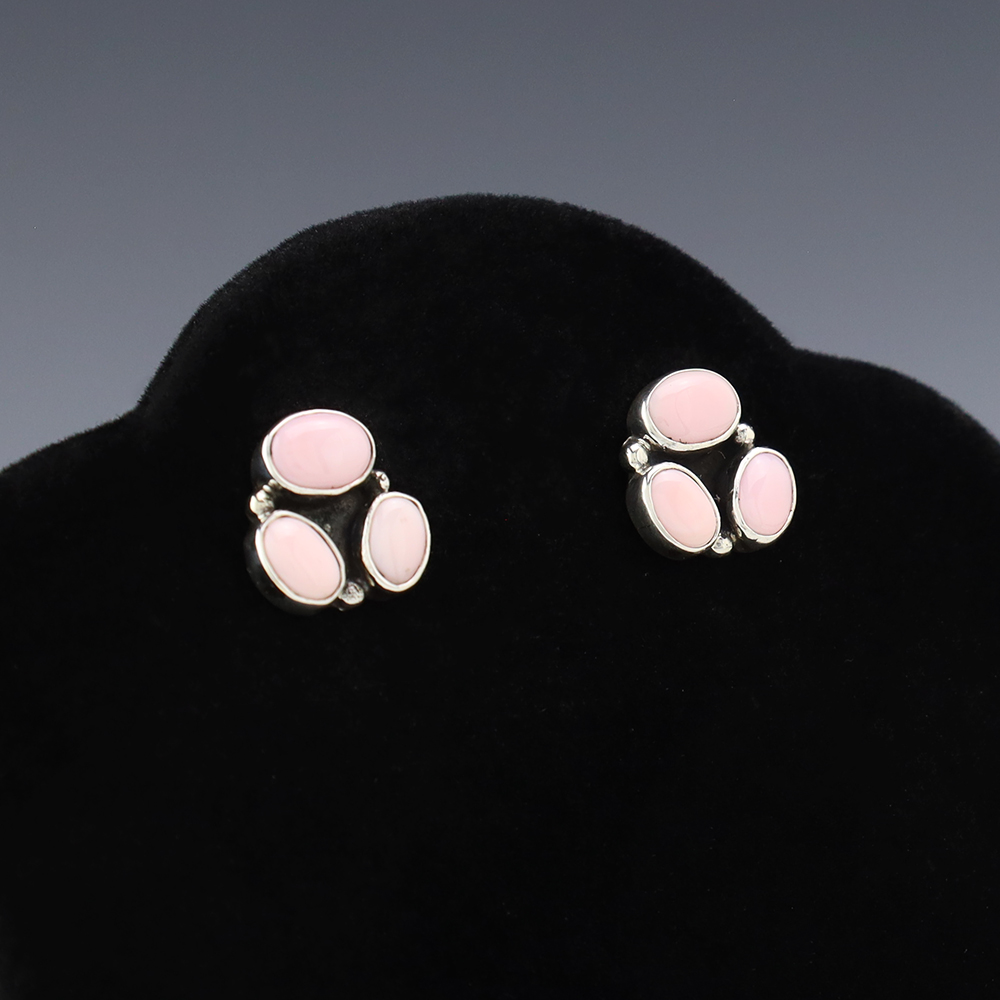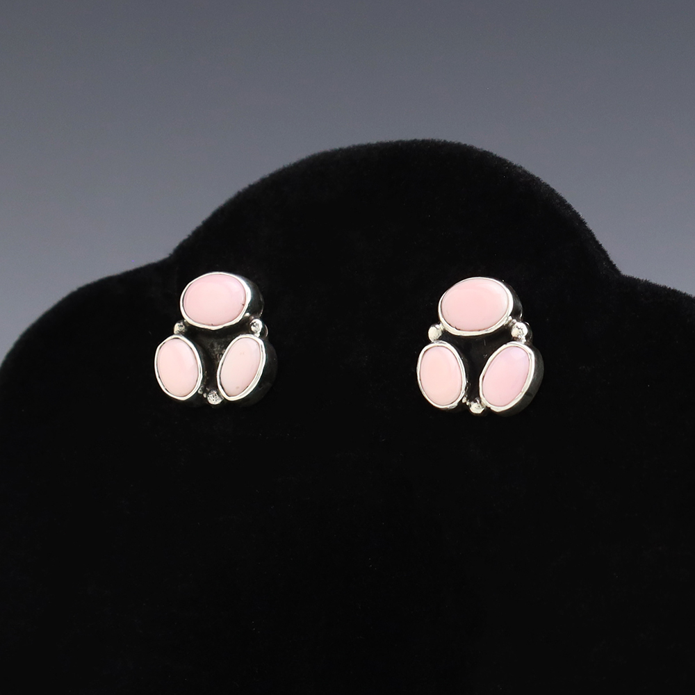 Lovely earrings hand made out of sterling silver and Pink Conch. These wonderful earrings will become a versatile accessory in your jewelry collection. Weighs 4 grams. Signed