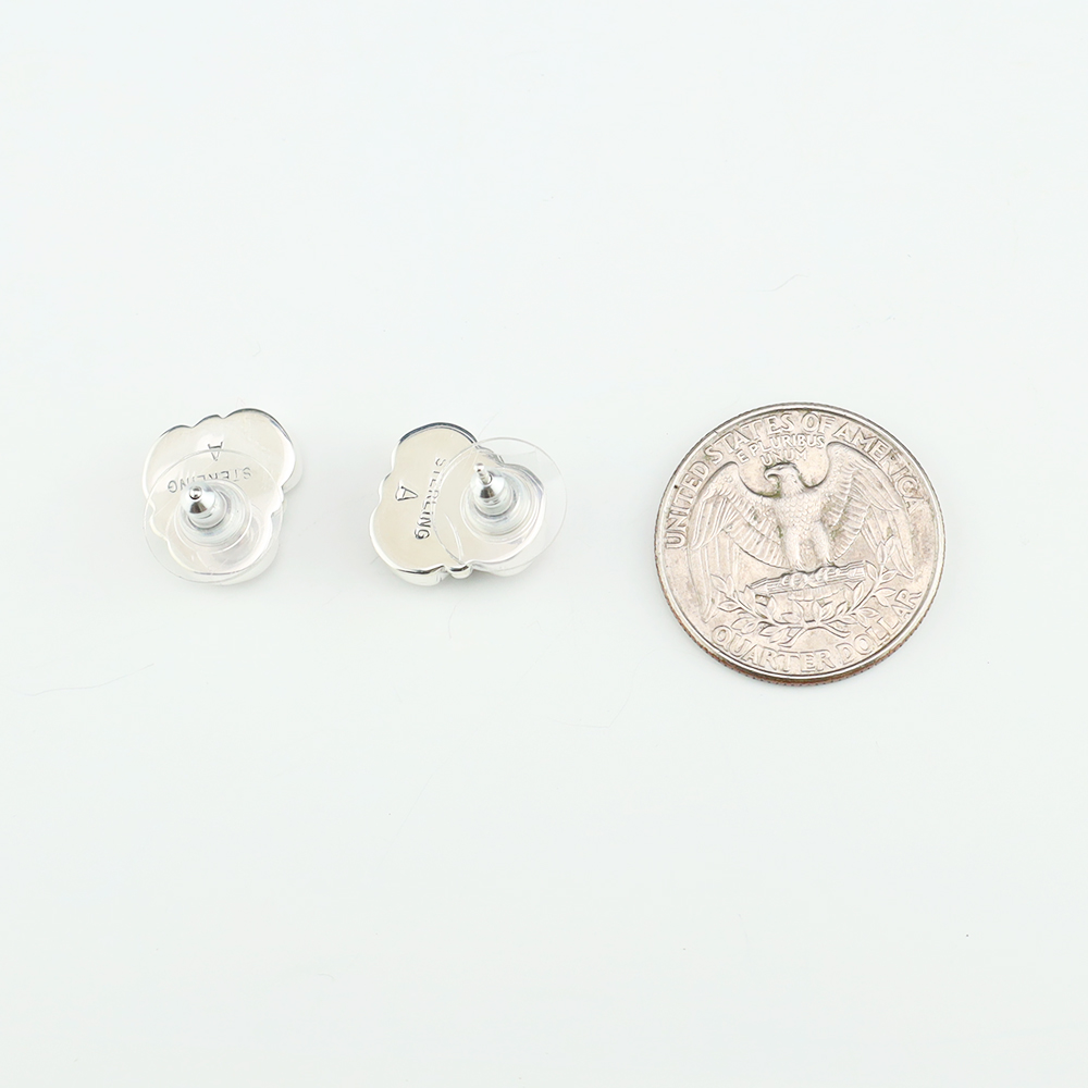 Outstanding sterling silver earrings with Mother of Pearl Shell and Turquoise inlay. Hand crafted by Zuni jewelry makers, Nancy and Sheldon Westika. The Westikas have been making jewelry since the 1970’s and they are known for their fine inlay work. Weighs 6 grams. Signed 7/8” wide x 7/8” tall 1 ...