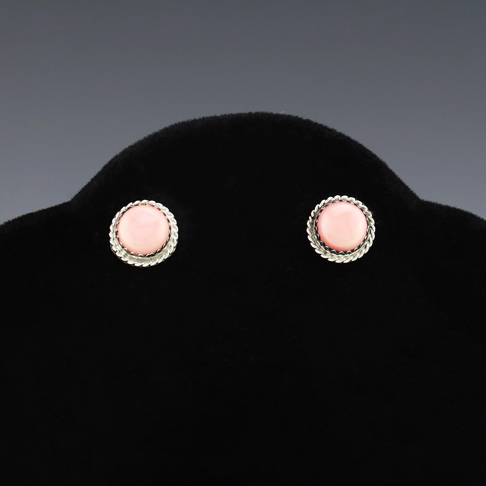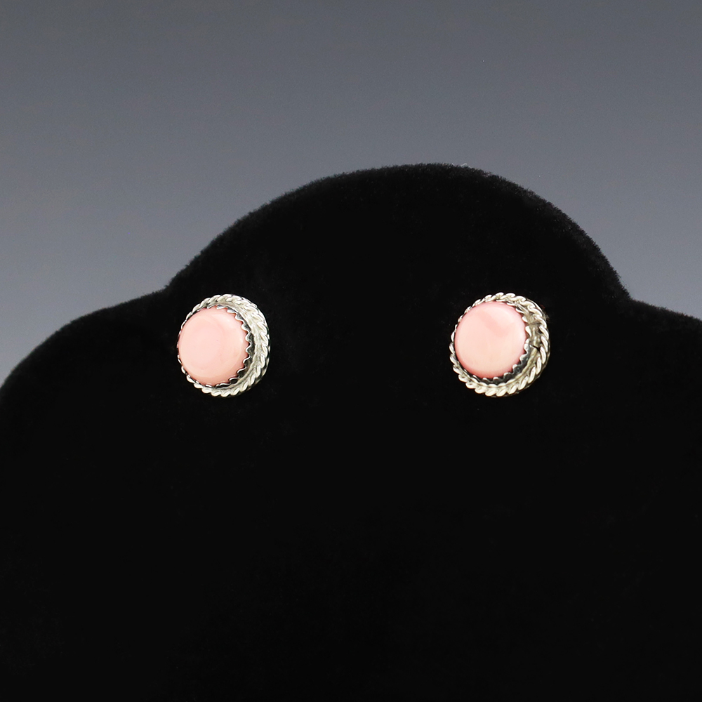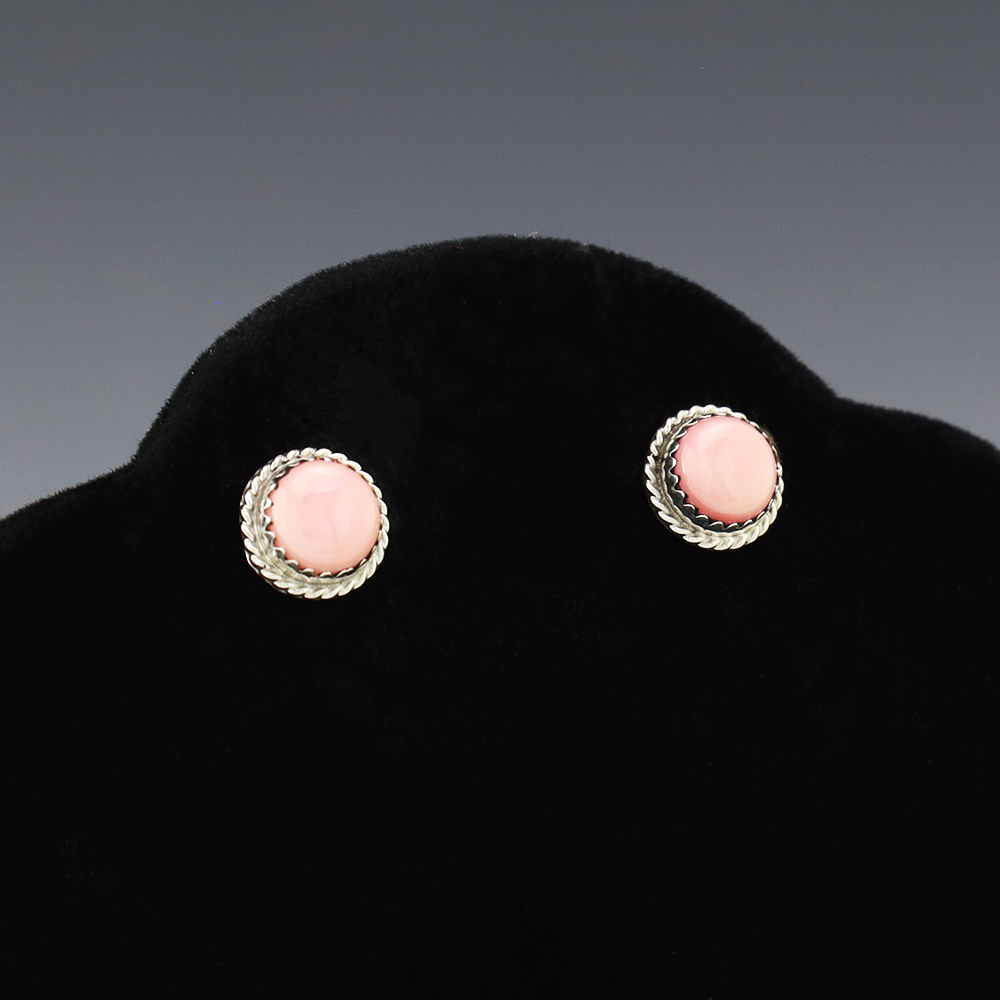 Lovely earrings hand made out of sterling silver and Pink Conch by Navajo artist Esther White. These wonderful earrings will become a versatile accessory in your jewelry collection. Weighs 4 grams.