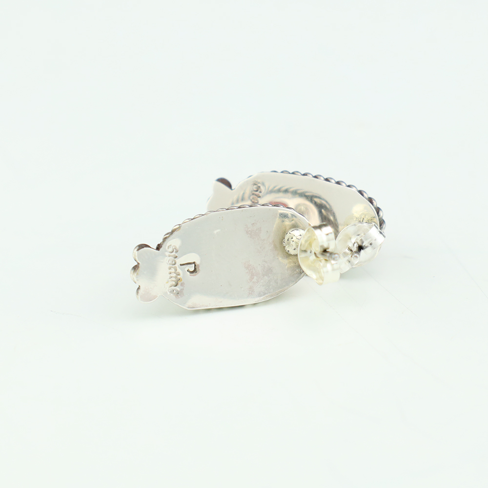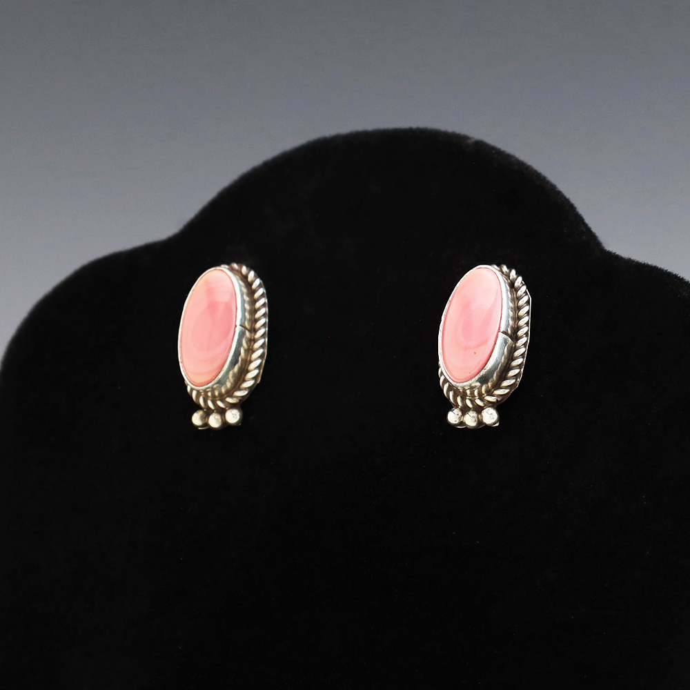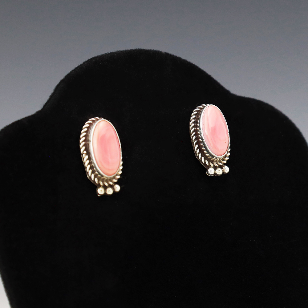Beautiful earrings hand made out of sterling silver and Pink Conch by Navajo silversmith Priscilla Smith. These wonderful earrings will become a versatile accessory in your jewelry collection. Weighs 6 grams. Signed