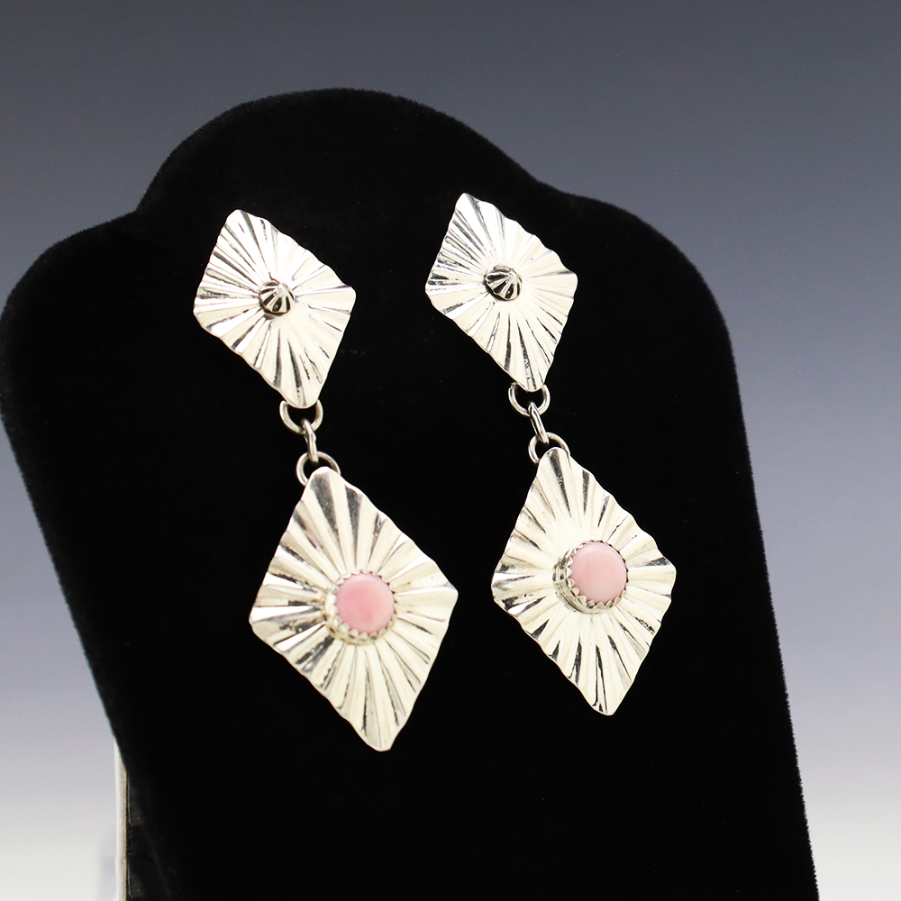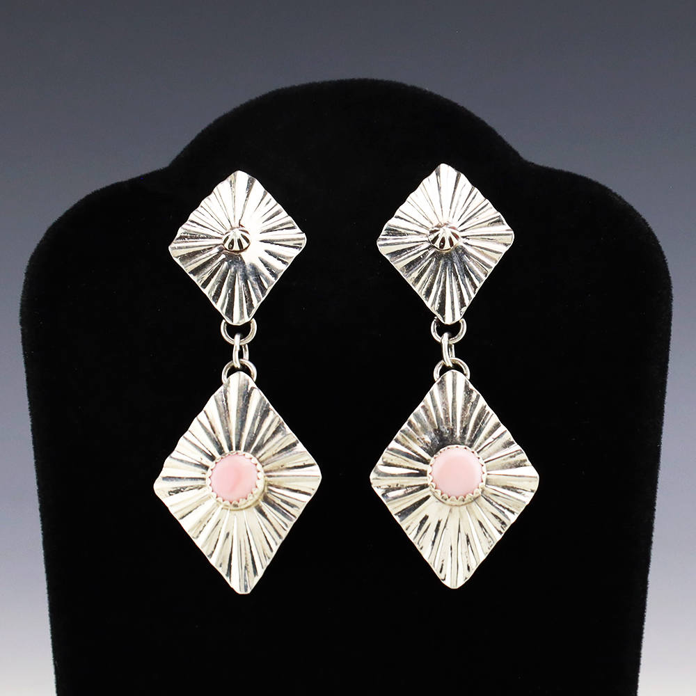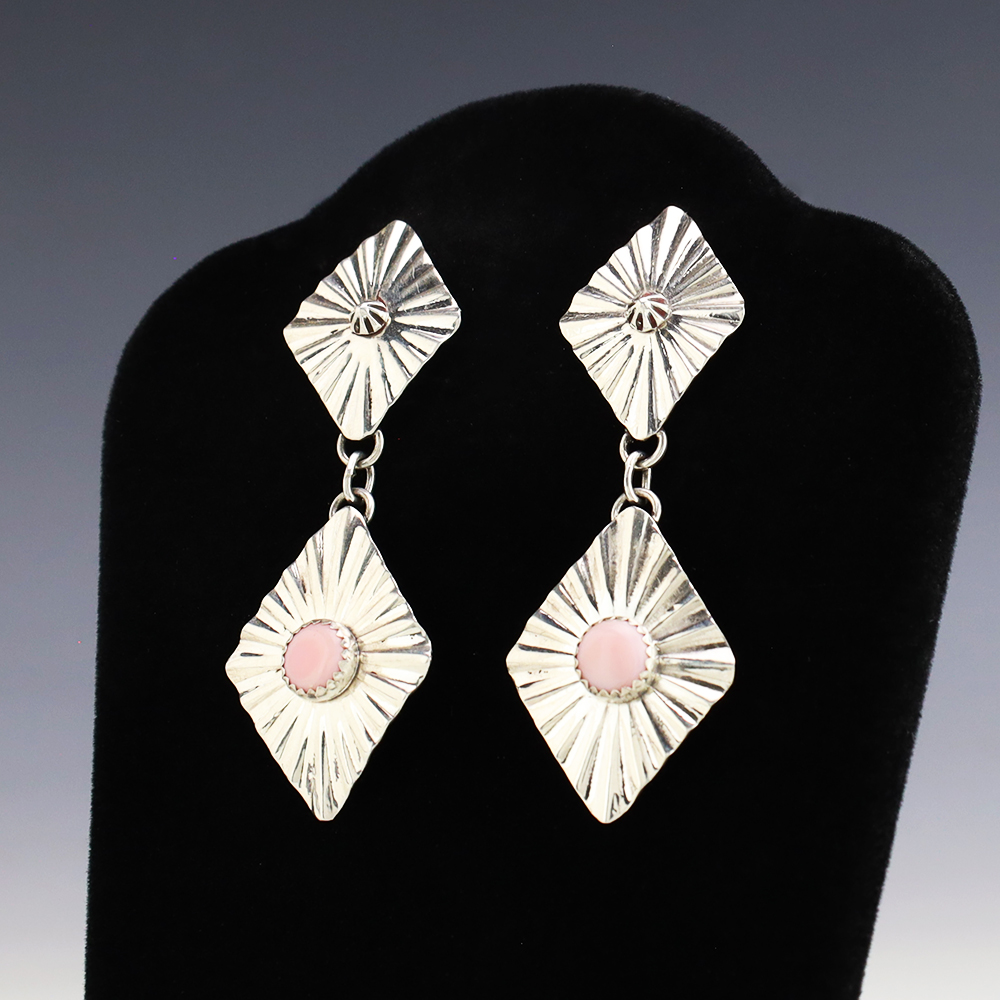 Beautiful earrings hand made out of sterling silver and Pink Conch. These wonderful earrings will become a versatile accessory in your jewelry collection. Weighs 8 grams.