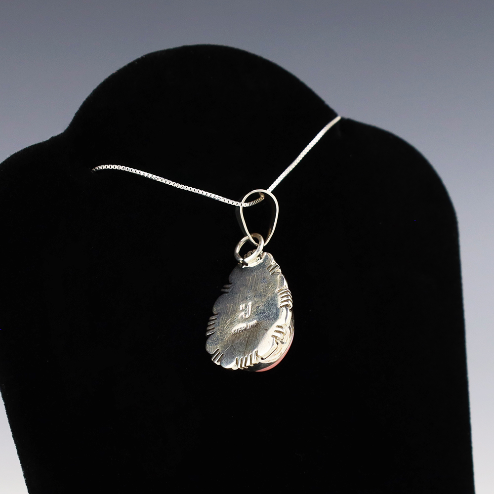 Zuni fetish carver Brian Yatsattie created this stunning seahorse pendant. Hand carved out of Mother of Pearl Shell with Turquoise inlaid eyes. Amazing detail is carved throughout the pedant. A wonderful addition to your Native American jewelry or fetish collection. Weighs 20 grams. 2 1/4” tall x 3/4” long x...