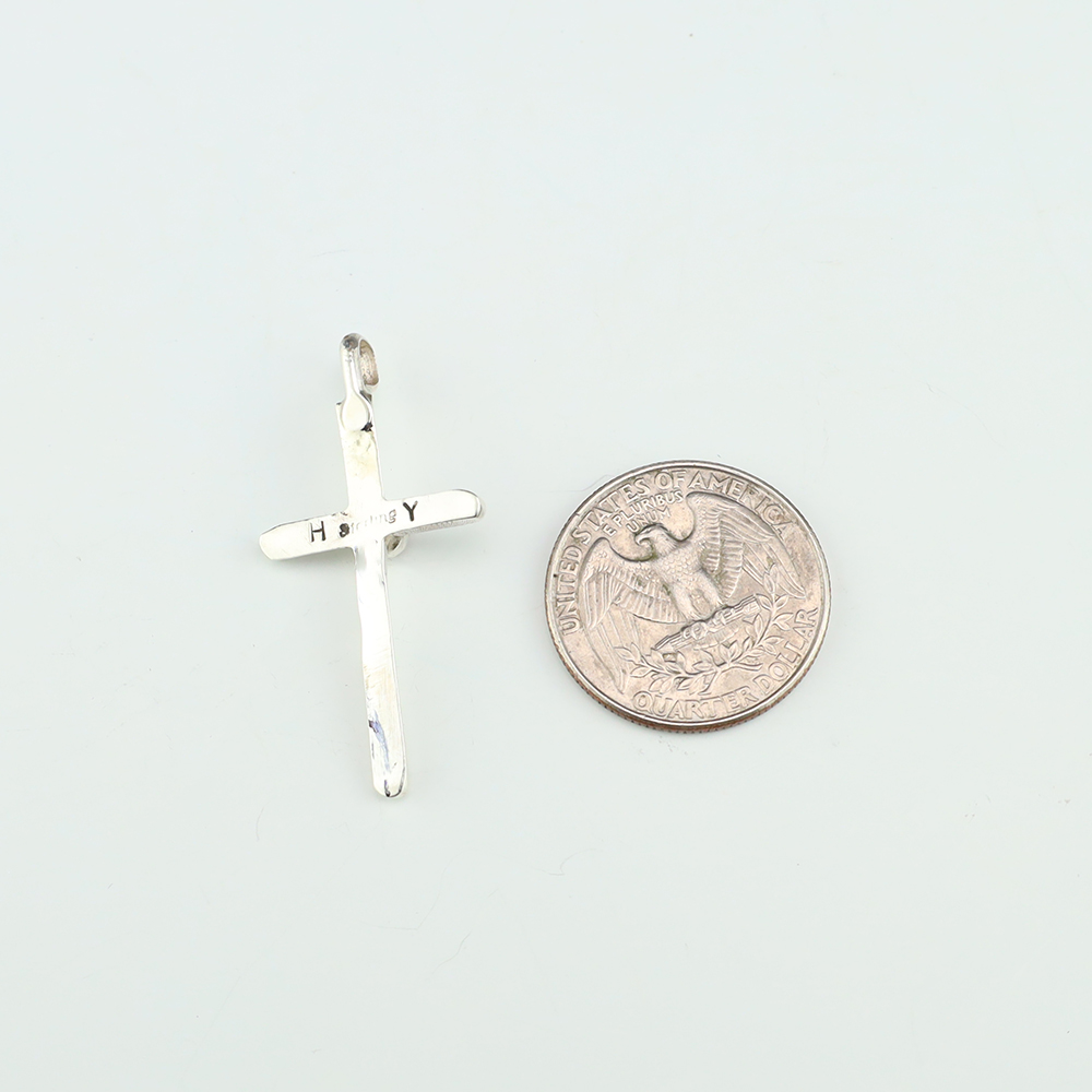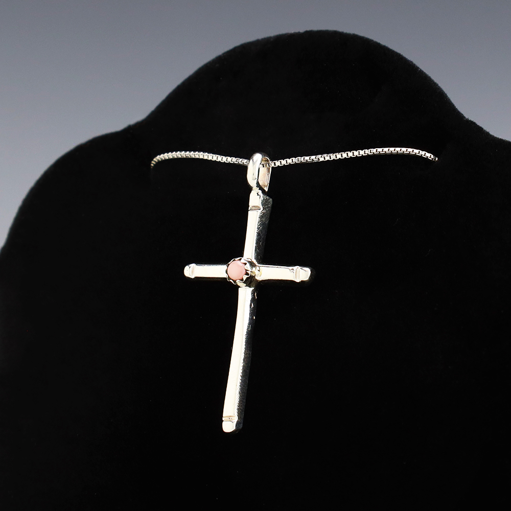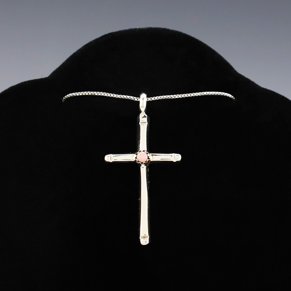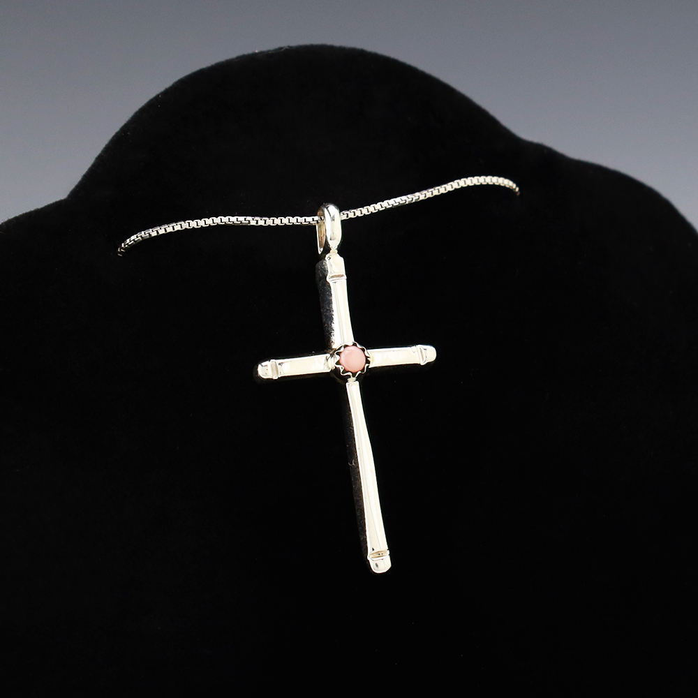 Navajo silversmith Harrison Yazzie made this lovely cross pendant out of sterling silver and Pink Coral A timeless beauty that you will enjoy for years to come. Weighs 4 grams. Signed. (Chain not included)