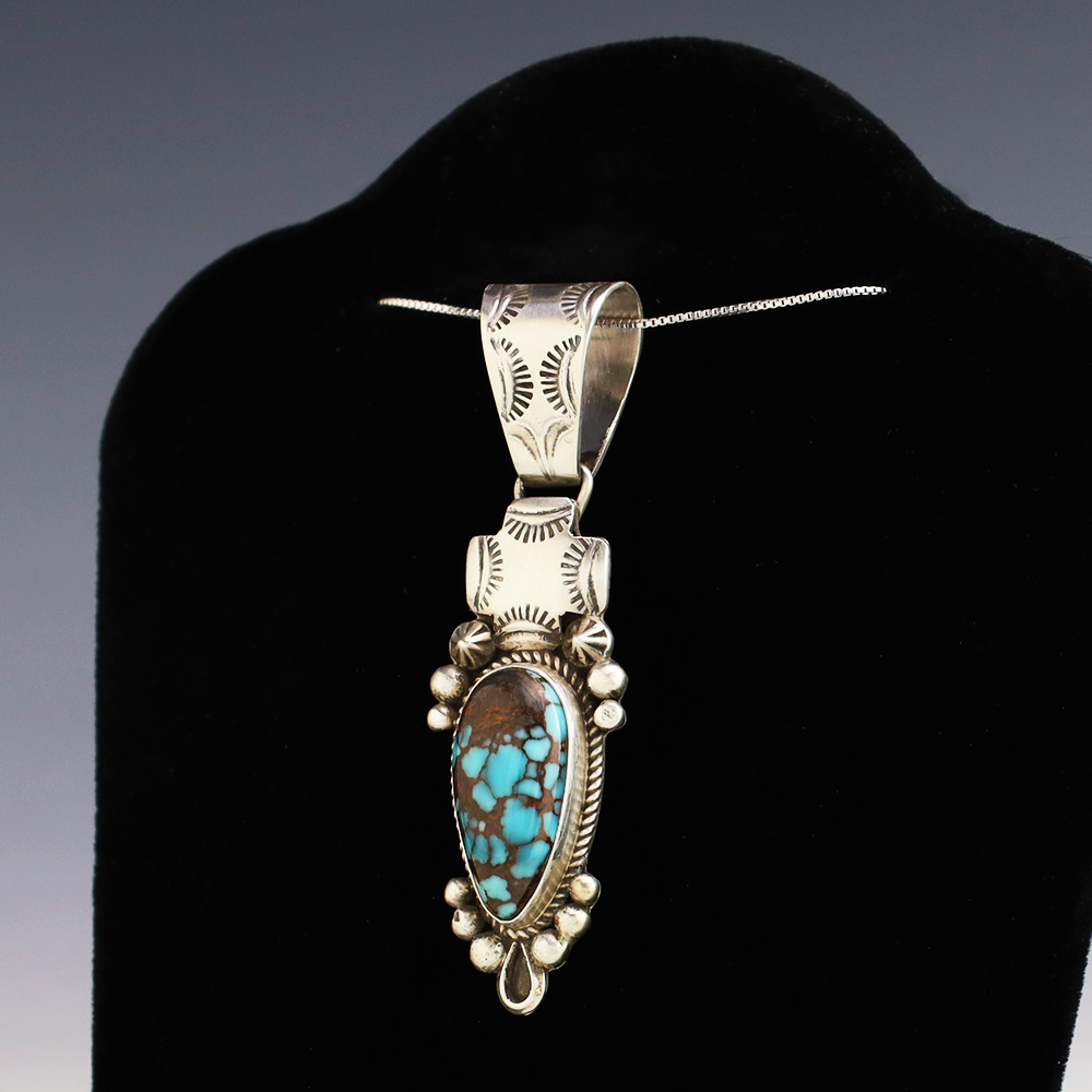 Gorgeous pendant hand made out of sterling silver and Prince Turquoise by Navajo artist Etta Endito. A timeless beauty that you will enjoy for years to come. Weighs 8 grams. Signed (Chain not included)