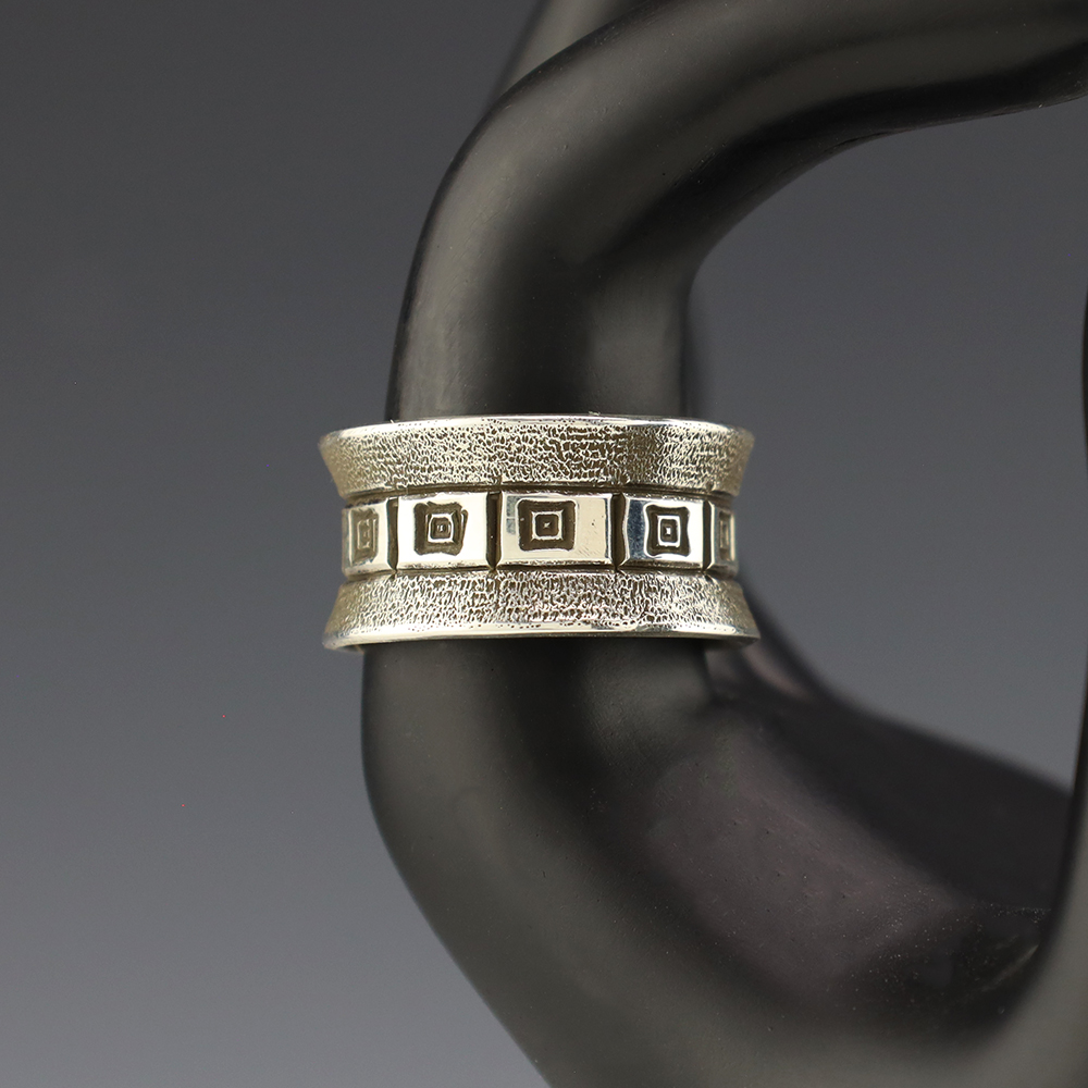 Around 1865, a Navajo Blacksmith Atsidi Sani who admired the silver adornments that the Spaniards and their horses had. Atsidi Sani got the Spaniards to teach him how to work with silver and began making silver conchos. This was the beginning of Navajo jewelry, and soon Atsidi taught his brother and many others how to silversmith. Traditionally, Navajo jewelers made silver jewelry with just stamp work and no stones. Today, they have expanded their jewelry making techniques and they create beautiful jewelry using sand casting, stone inlay, and overlay.