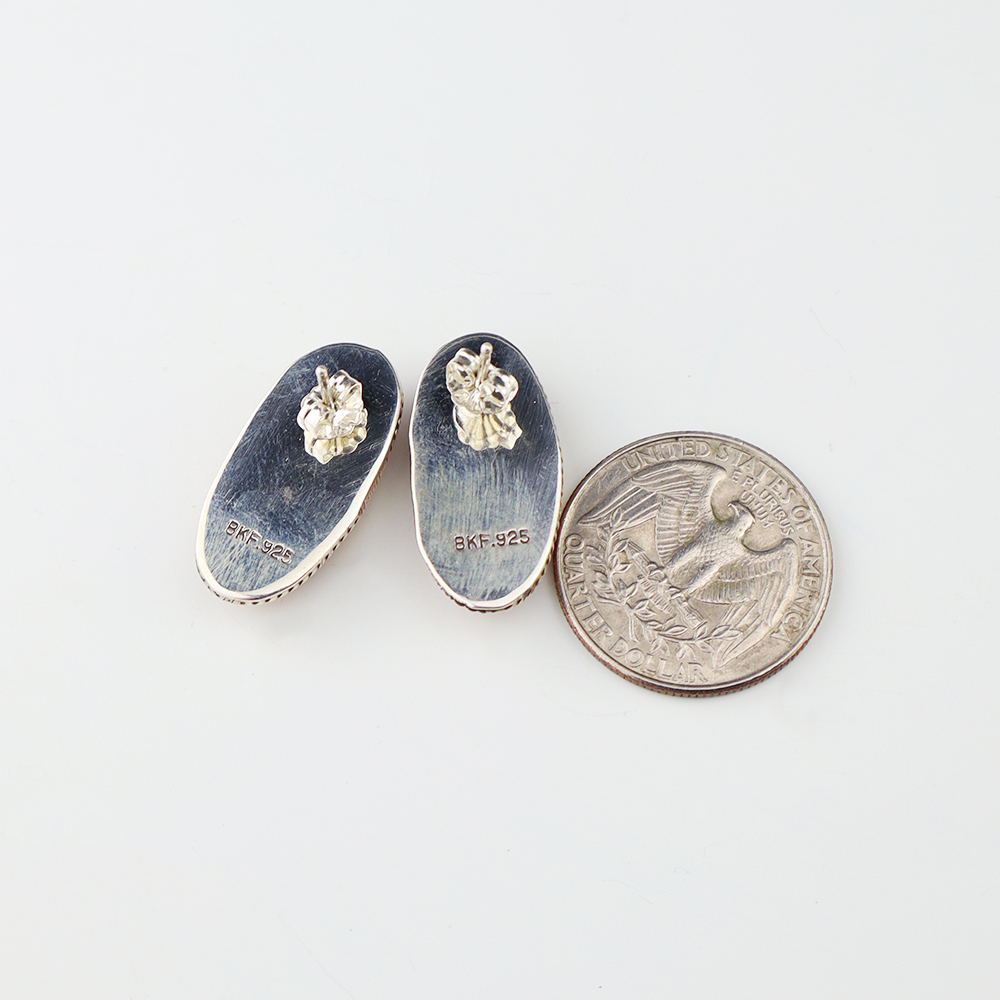 Zuni artist, Diane Lonjose created these outstanding earrings. Made out of sterling silver and set with natural Serpentine stones. Zuni artists are known for their lapidary work. Weighs 18 gram. Signed 1 1/8″ wide x 2 3/8” tall Artist card included Zuni Pueblo is the largest pueblo in New Mexico,...