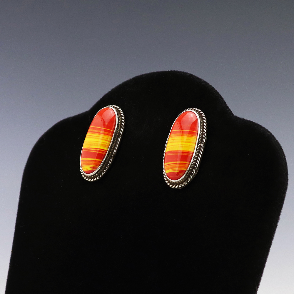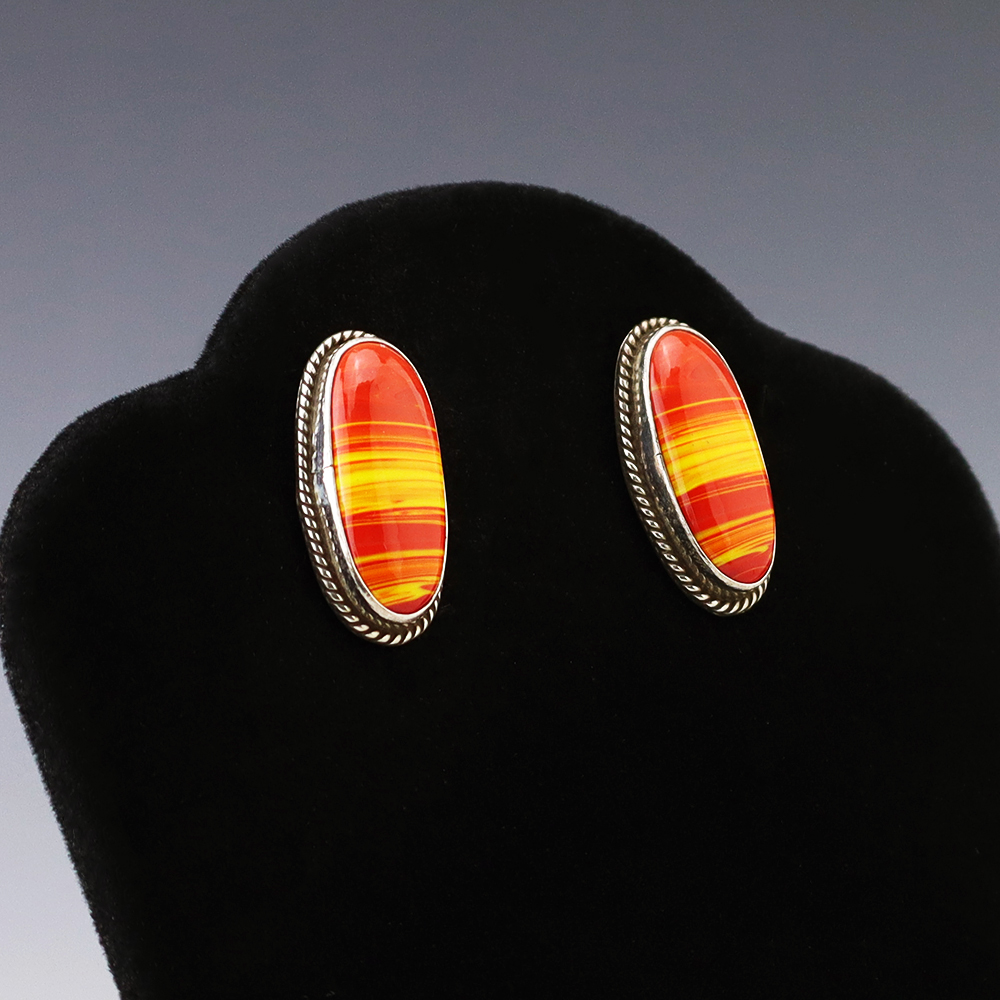 Magnificent cufflinks that feature Jet and Red Line Obsidian inlaid in a sterling silver setting. Hand made with high quality craftsmanship that is a great representation of the traditional inlay work. Hand made by Zuni jewelers Nancy and Sheldon Westika. The Westikas have been making jewelry since the 1970’s and...
