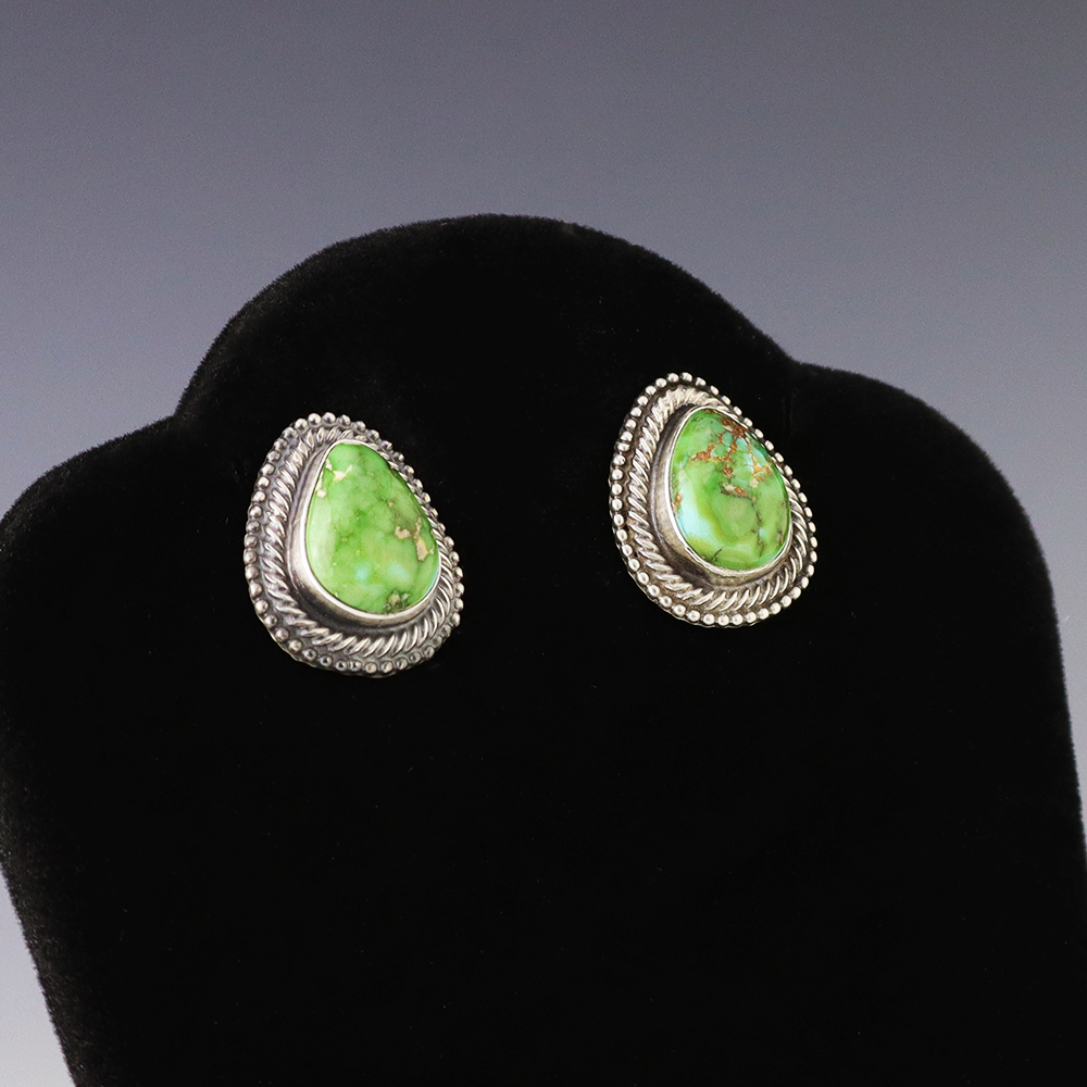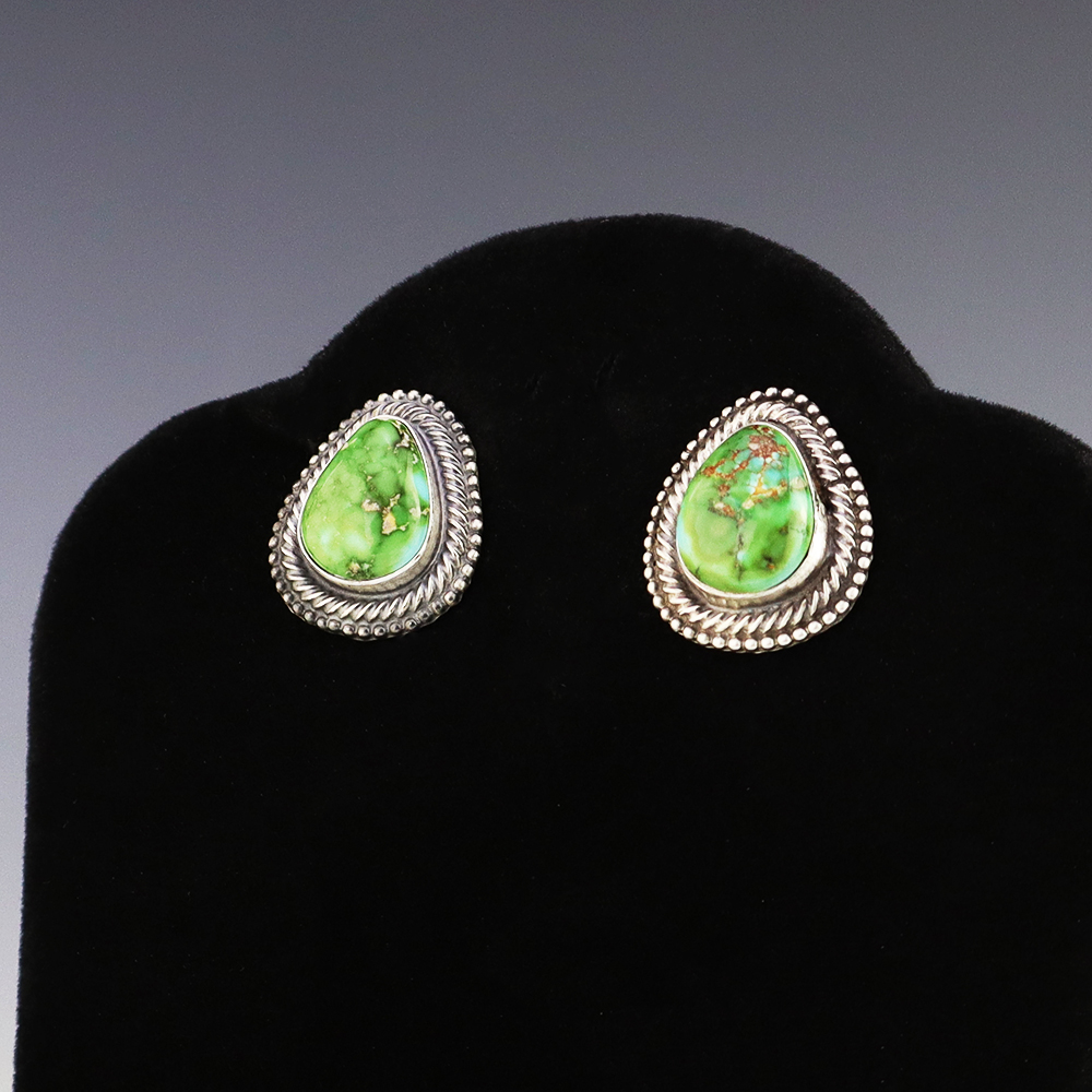 NATIVE AMERICAN ZUNI TURQUOISE EARRINGS BY NANCY & SHELDON WESTIKA