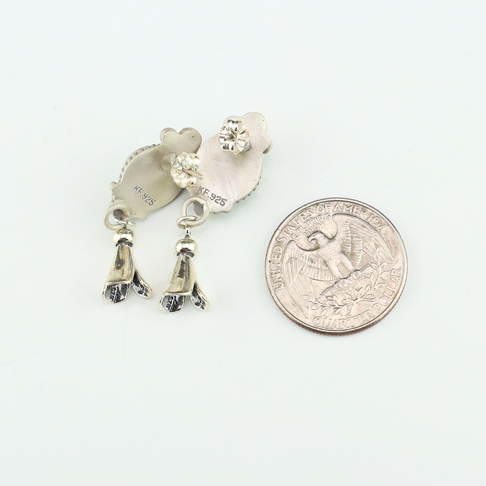Zuni jewelry makers, Nancy and Sheldon Westika created these stunning earrings. Made out of sterling silver and inlaid with Henna Limestone and Turquoise. Zuni artists are known for their lapidary work. The Westikas have been making jewelry since the 1970’s and they are known for their fine inlay work. Weighs...
