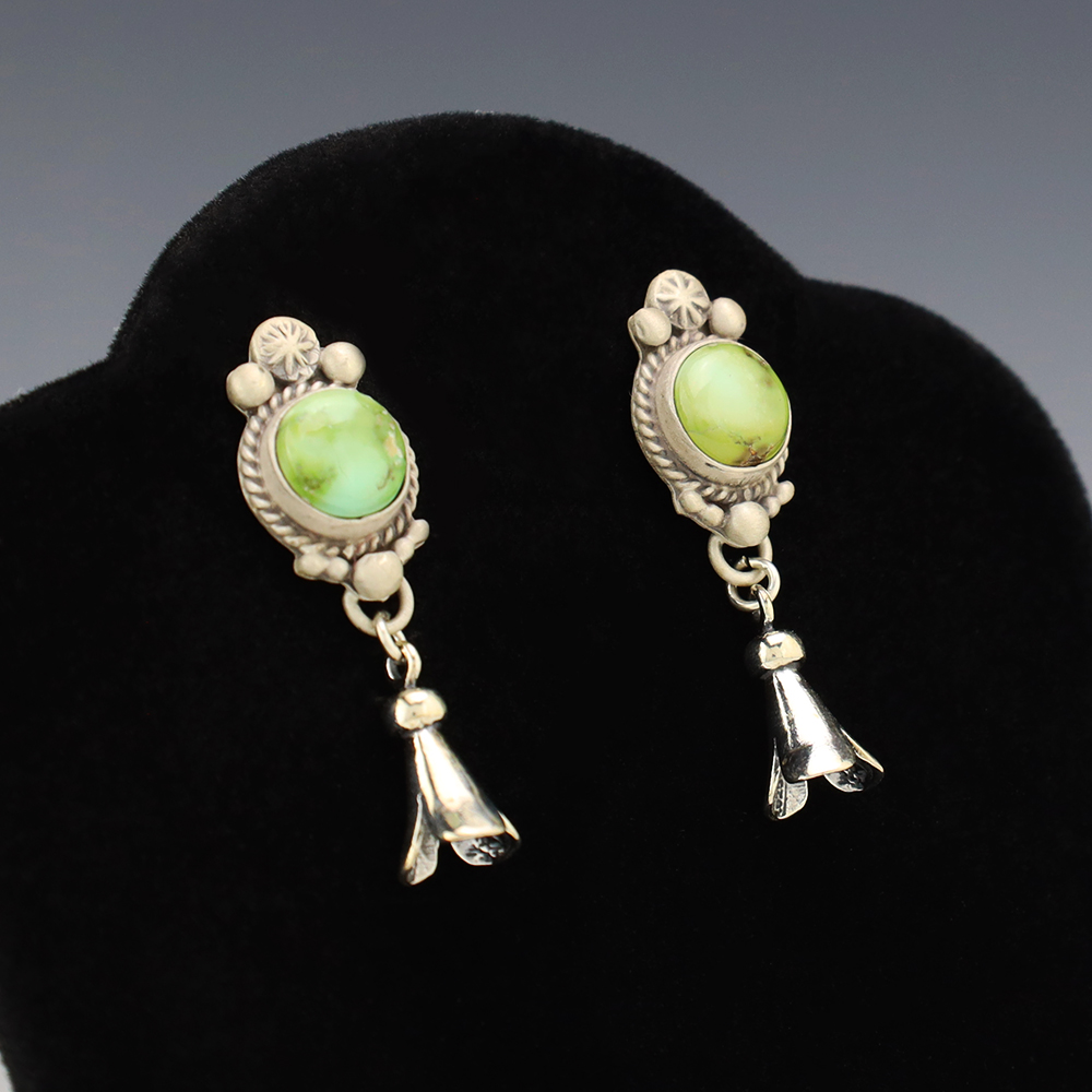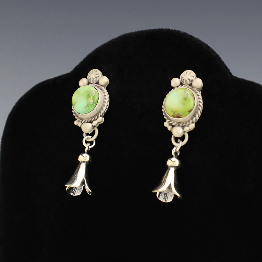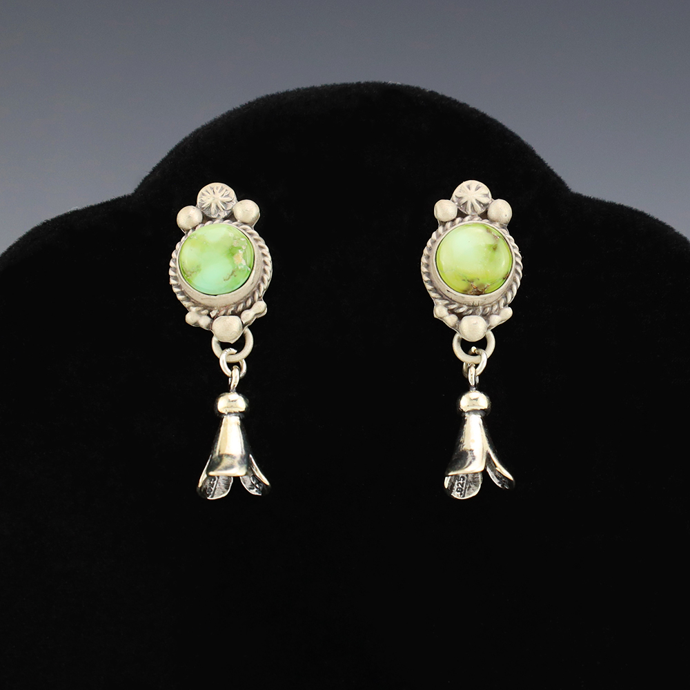 Lovely earrings hand made out of sterling silver and Sonoran Gold Turquoise. These wonderful earrings will become a versatile accessory in your jewelry collection. Weighs 6 grams. Signed