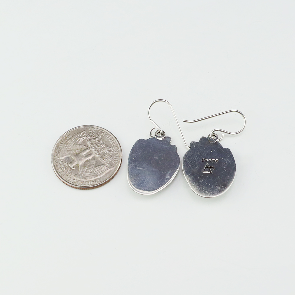 Zuni jewelry makers, Nancy and Sheldon Westika created these stunning earrings. Made out of sterling silver and inlaid with Henna Limestone and Turquoise. Zuni artists are known for their lapidary work. The Westikas have been making jewelry since the 1970’s and they are known for their fine inlay work. Weighs...