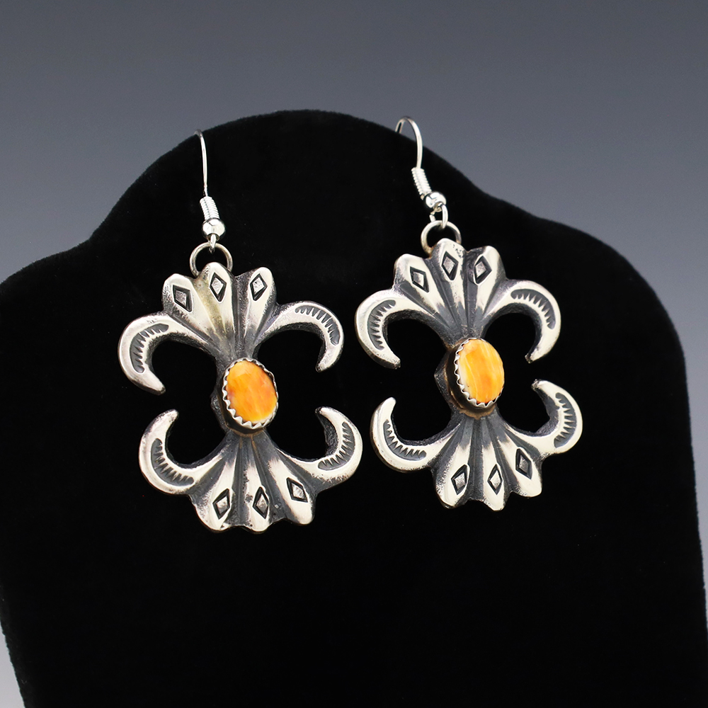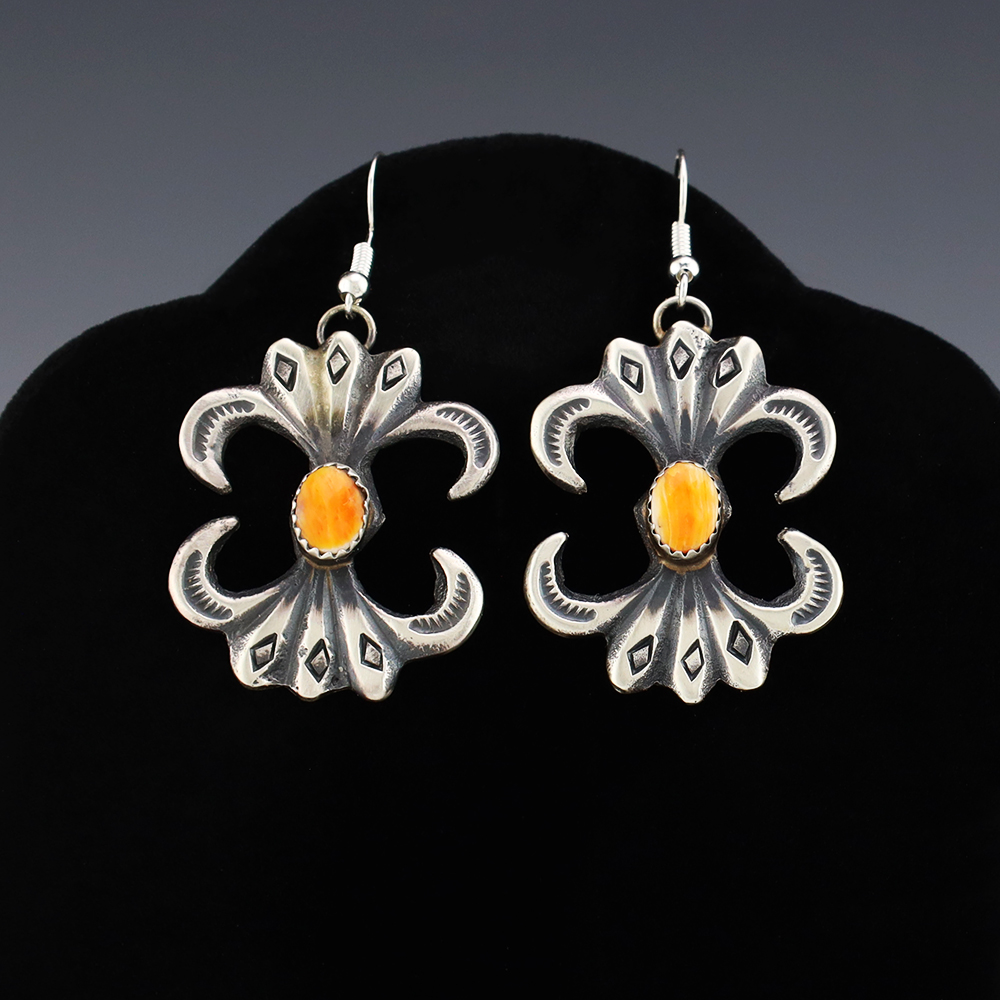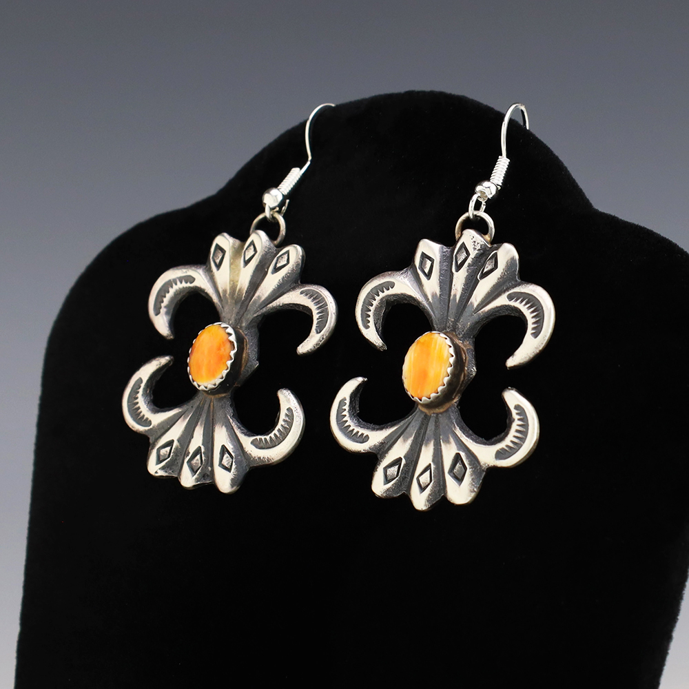 Lovely earrings hand made out of sterling silver and Spiny Oyster. These fabulous earrings will become a versatile accessory in your jewelry collection. Weighs 16 grams. Signed
