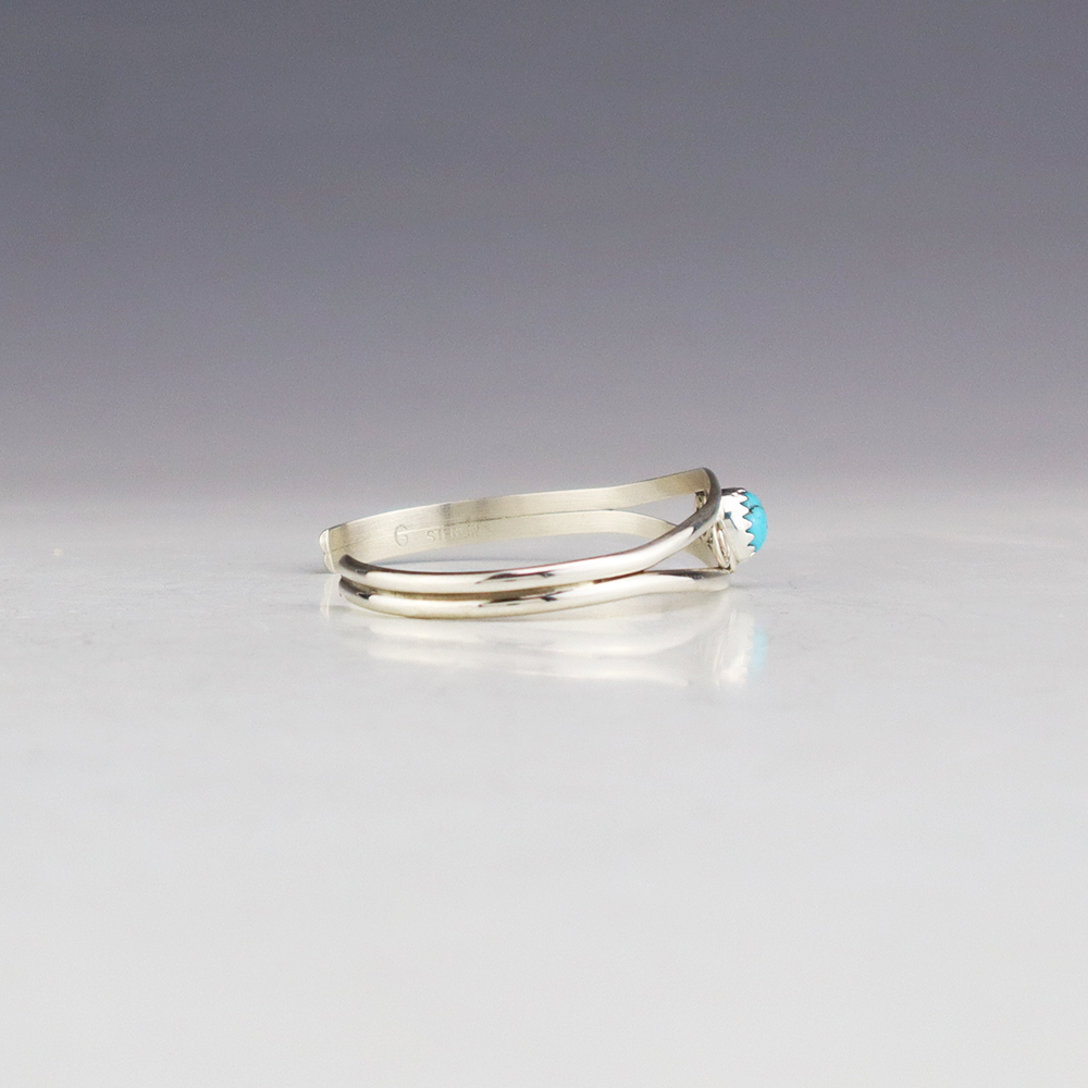 Amazing inlay work! Zuni jewelry makers, Nancy and Sheldon Westika created this magnificent ring. Made out of sterling silver and inlaid with Kingman Turquoise and Jet. Zuni artists are known for their lapidary work. The Westikas have been making jewelry since the 1970’s and they are known for their fine...