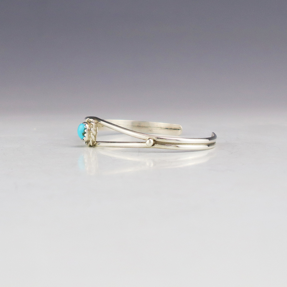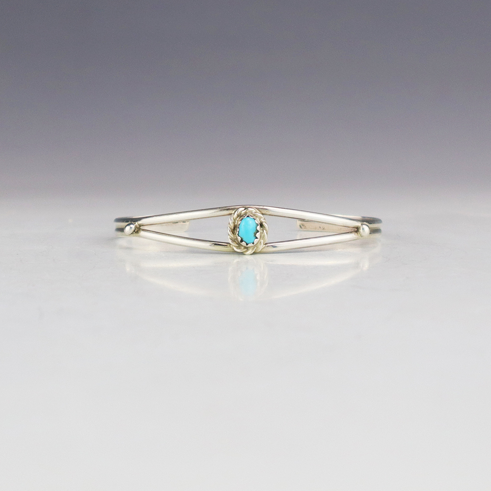 Lovely baby bracelet made out of sterling silver and Turquoise. This beautiful baby bracelet will be a great addition to your Native American jewelry collection. Weighs 4 grams.
