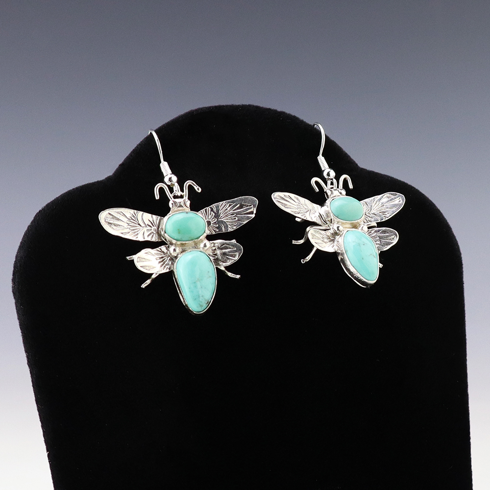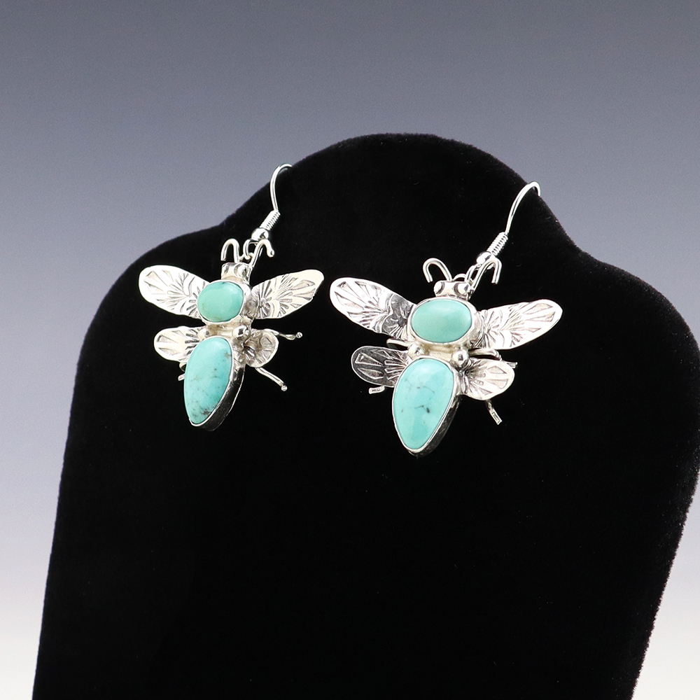 NAVAJO STERLING SILVER & TURQUOISE EARRINGS BY EVA & LINBERG BILLAH