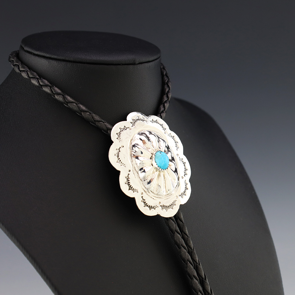 Wonderful sterling silver and Turquoise bolo. Great design! Weighs 22 grams Signed