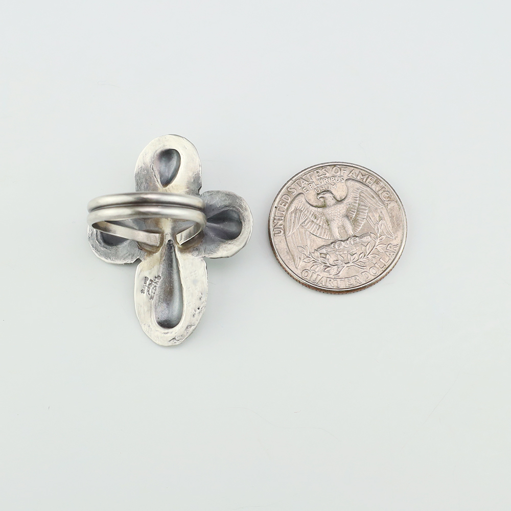 Zuni jewelry makers, Nancy and Sheldon Westika hand crafted this magnificent ring. Made out of sterling silver and inlaid with Kingman Turquoise and Jet. Zuni artists are known for their lapidary work. The Westikas have been making jewelry since the 1970’s and they are known for their fine inlay work. ...