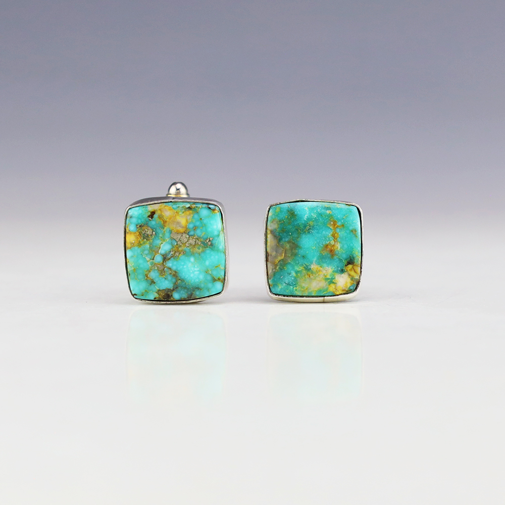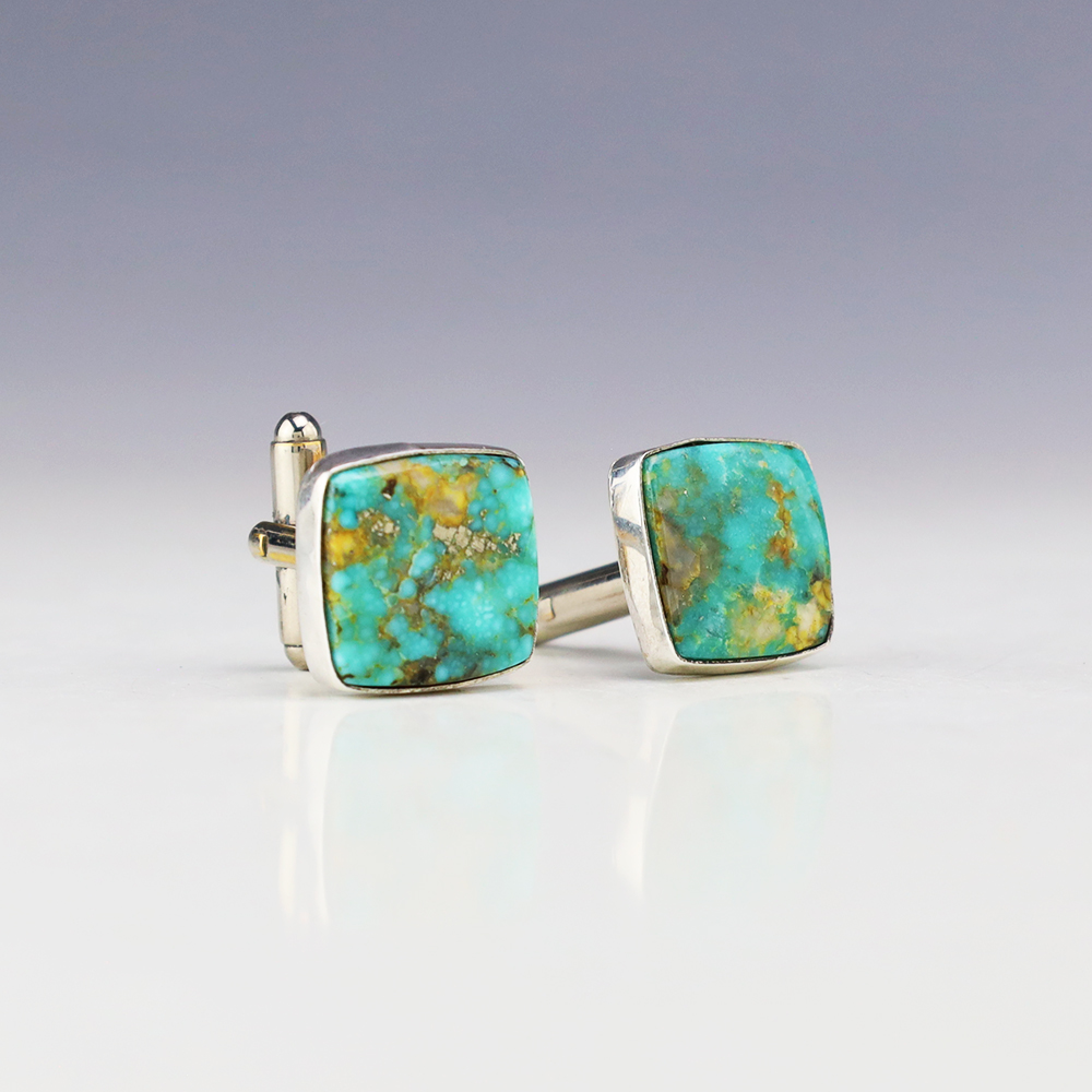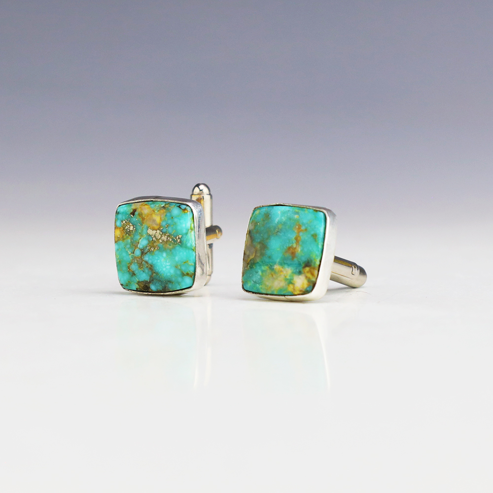 Striking cufflinks that will compliment any shirt. Handmade out of sterling silver and Turquoise. Weighs 8 grams. The cufflinks have nickle findings for durability. Signed