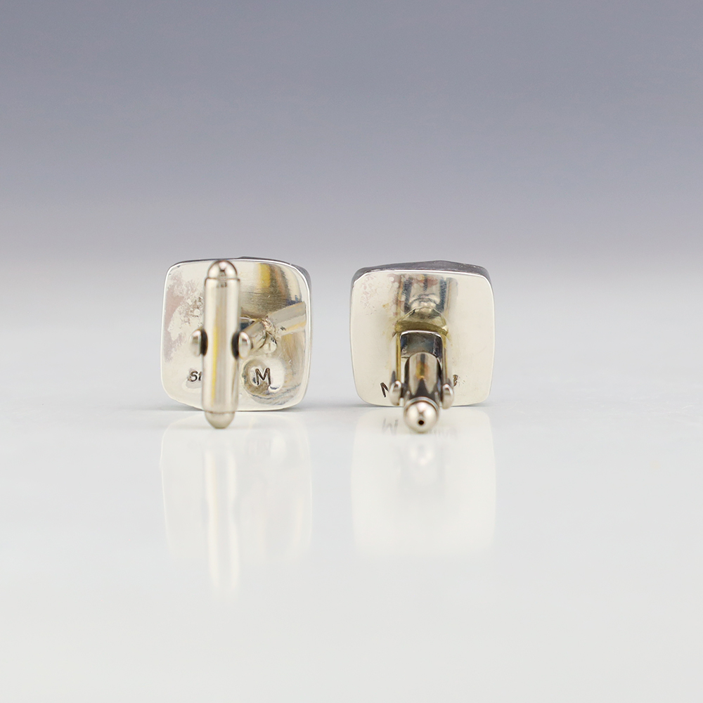 Magnificent cufflinks that feature Jet and Red Line Obsidian inlaid in a sterling silver setting. Hand made with high quality craftsmanship that is a great representation of the traditional inlay work. Hand made by Zuni jewelers Nancy and Sheldon Westika. The Westikas have been making jewelry since the 1970’s and...