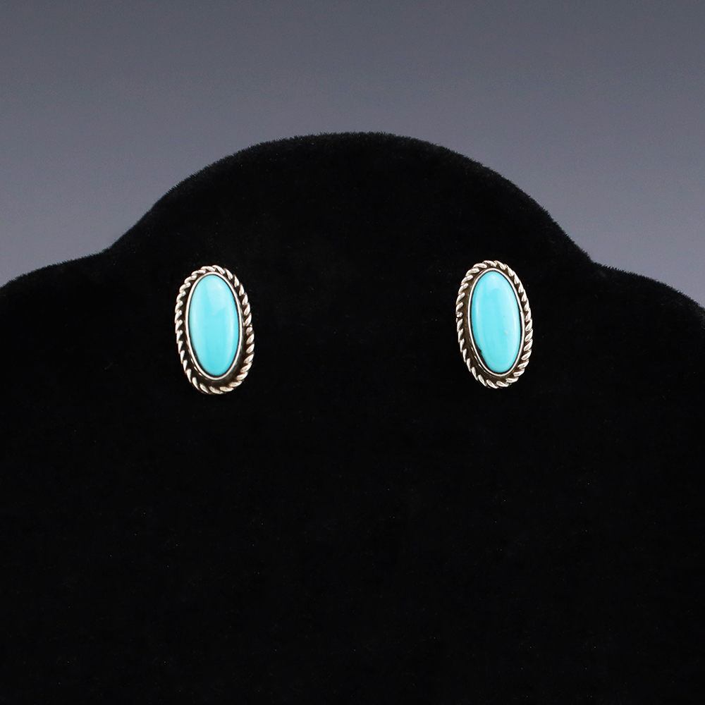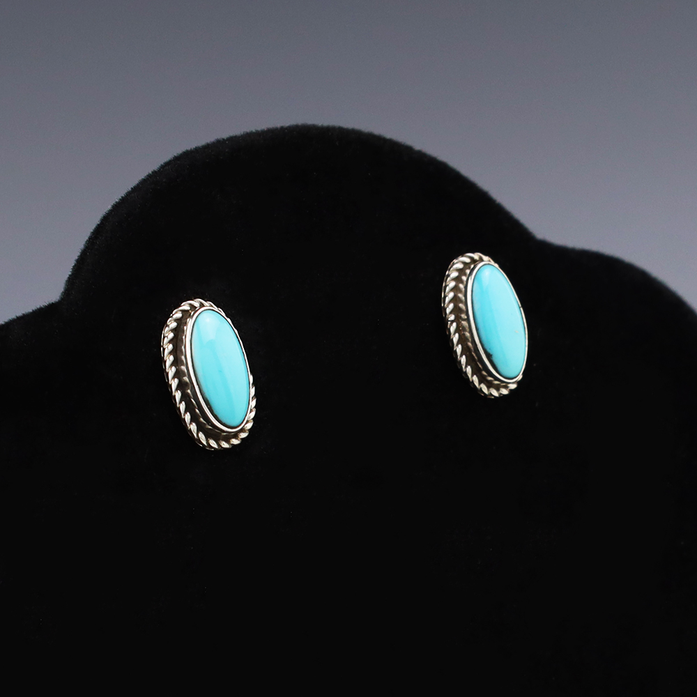 NAVAJO STERLING SILVER & TURQUOISE EARRINGS BY EVA & LINBERG BILLAH
