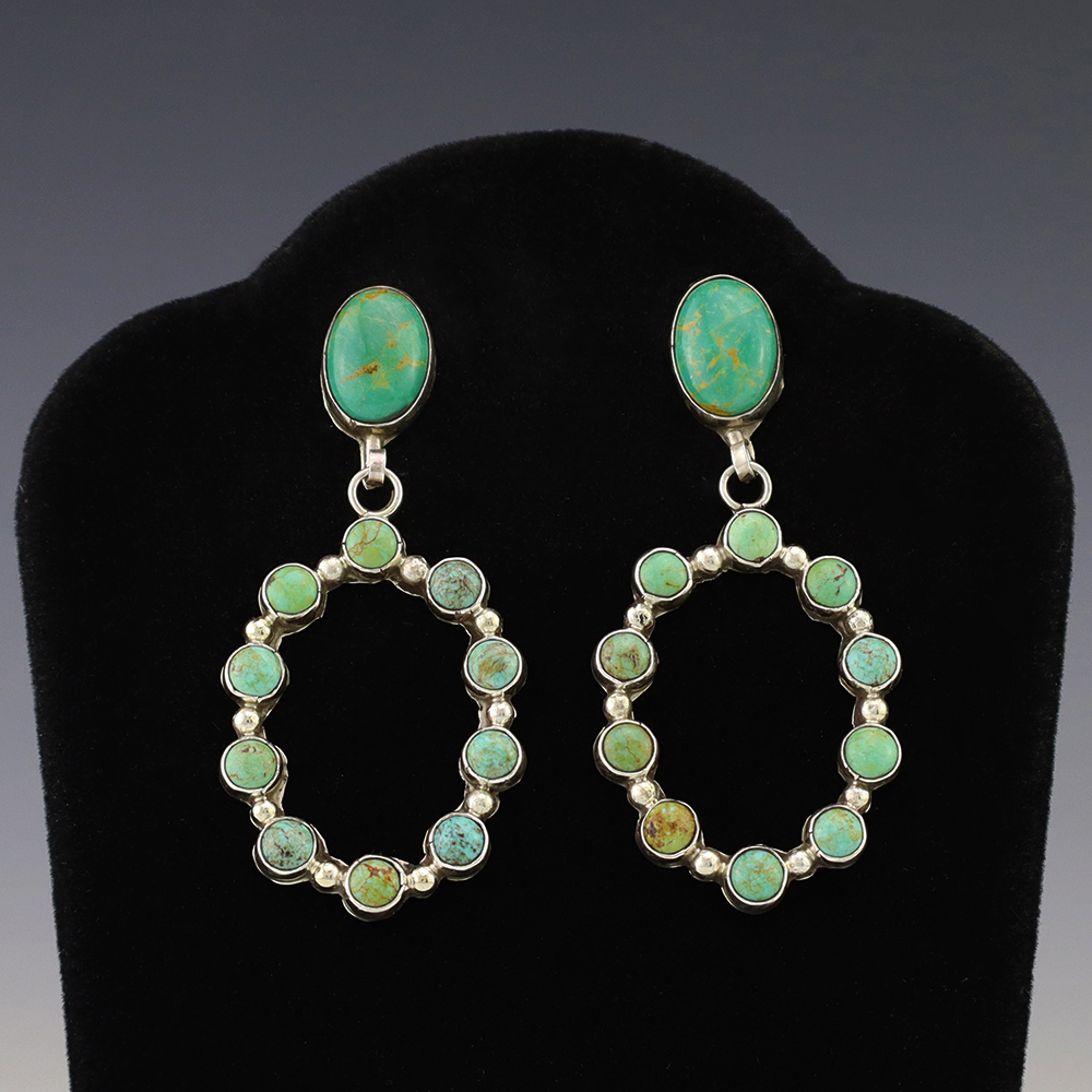 NATIVE AMERICAN ZUNI TURQUOISE EARRINGS BY NANCY & SHELDON WESTIKA