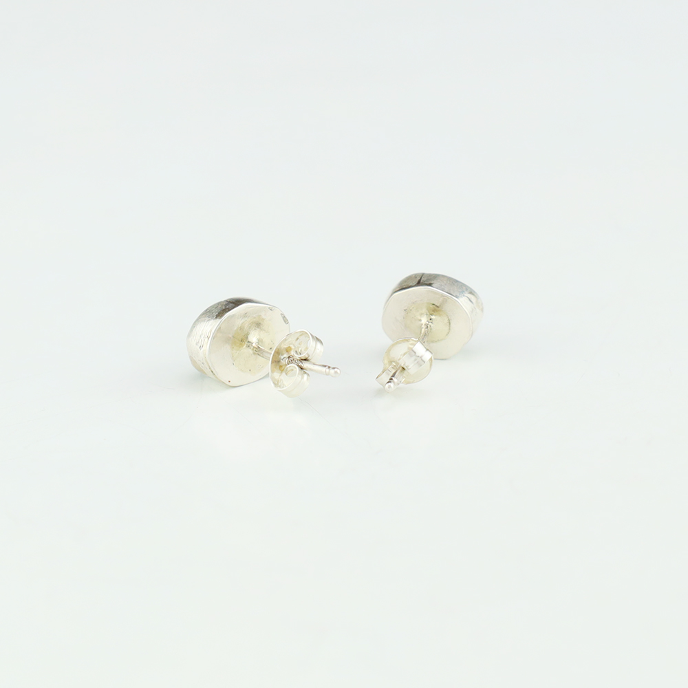Outstanding sterling silver earrings with Mother of Pearl Shell and Turquoise inlay. Hand crafted by Zuni jewelry makers, Nancy and Sheldon Westika. The Westikas have been making jewelry since the 1970’s and they are known for their fine inlay work. Weighs 6 grams. Signed 7/8” wide x 7/8” tall 1 ...
