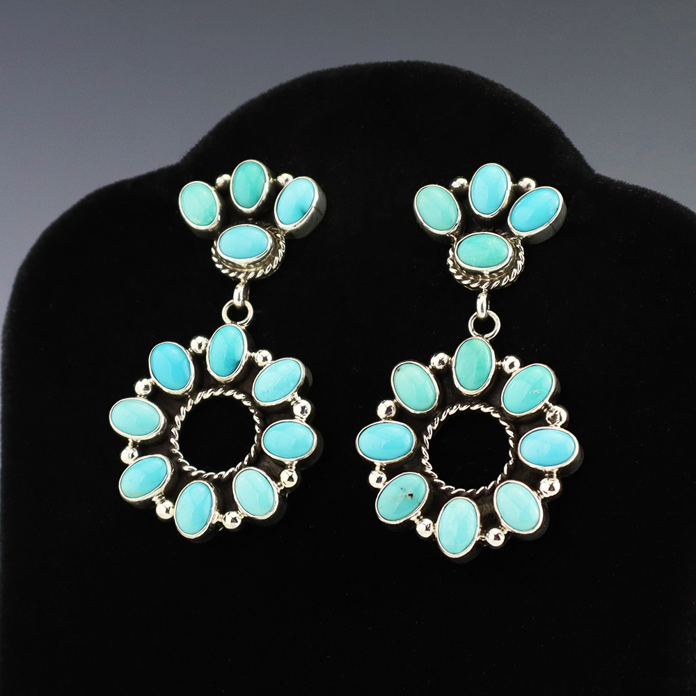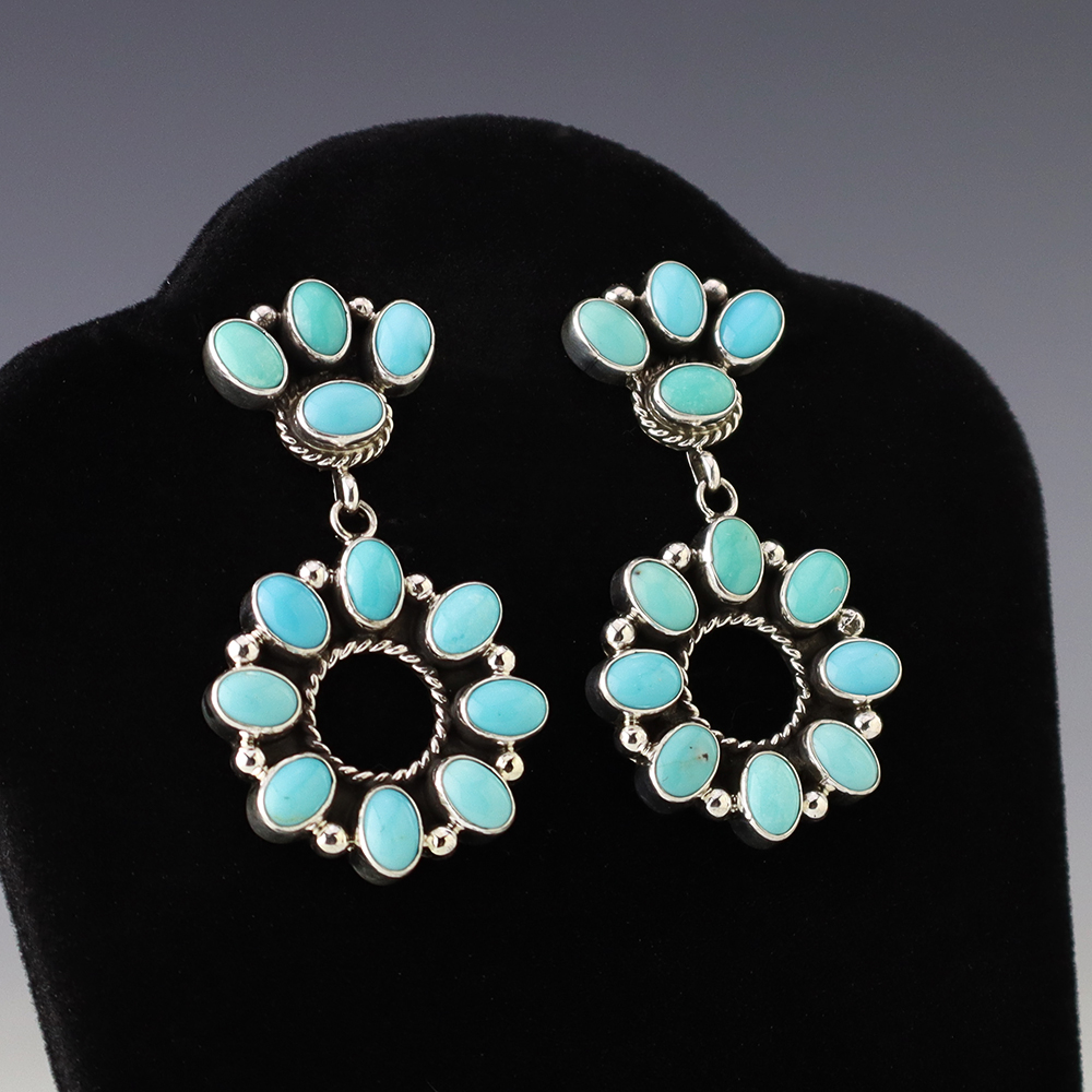 ZUNI MOTHER OF PEARL & TURQUOISE EARRINGS BY NANCY AND SHELDON WESTIKA