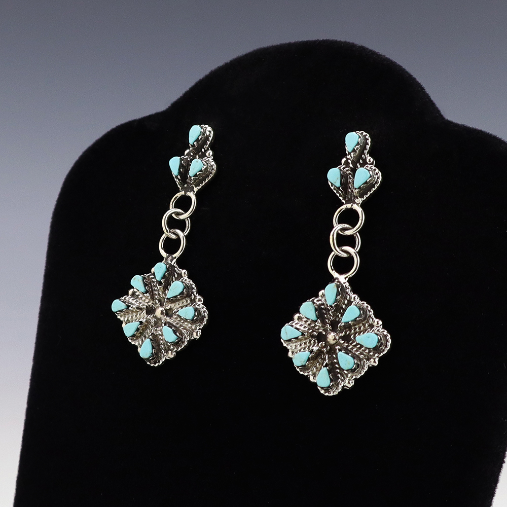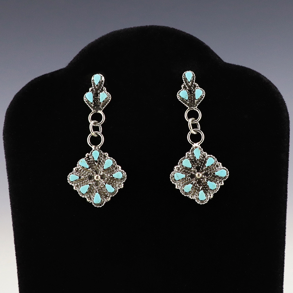 NATIVE AMERICAN ZUNI TURQUOISE EARRINGS BY NANCY & SHELDON WESTIKA