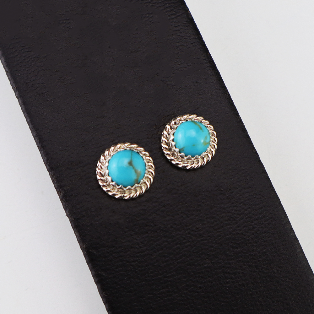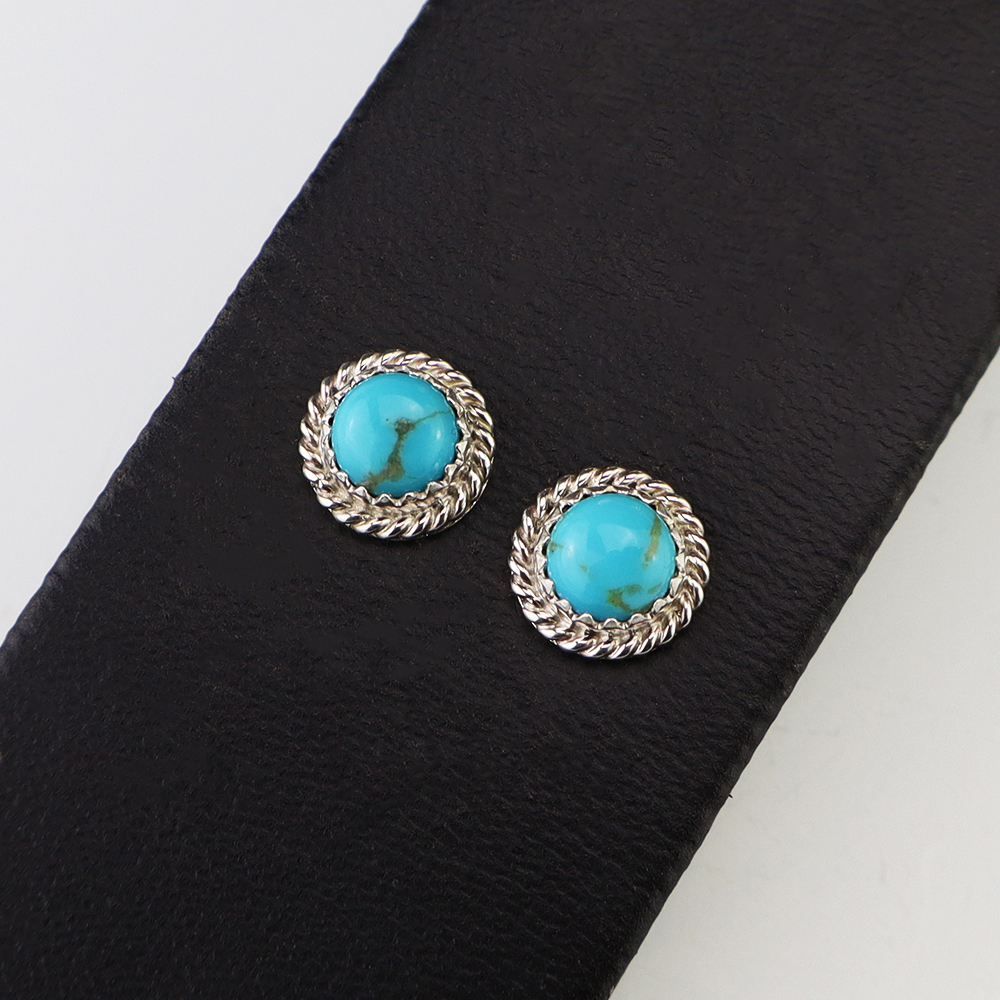 Lovely earrings hand made out of sterling silver and Turquoise by Navajo silversmith Theresa Kinsel. These wonderful earrings will become a versatile accessory in your jewelry collection.