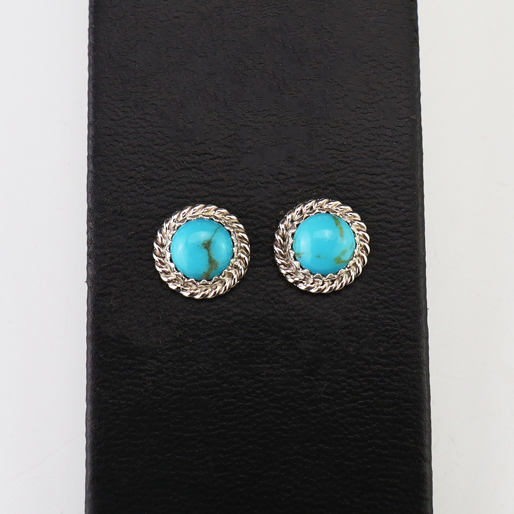 Lovely earrings hand made out of sterling silver and Turquoise by Navajo silversmith Theresa Kinsel. These wonderful earrings will become a versatile accessory in your jewelry collection.