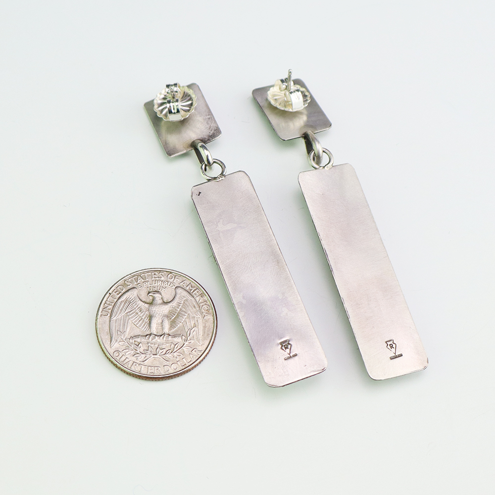 ZUNI MOTHER OF PEARL & TURQUOISE EARRINGS BY NANCY AND SHELDON WESTIKA