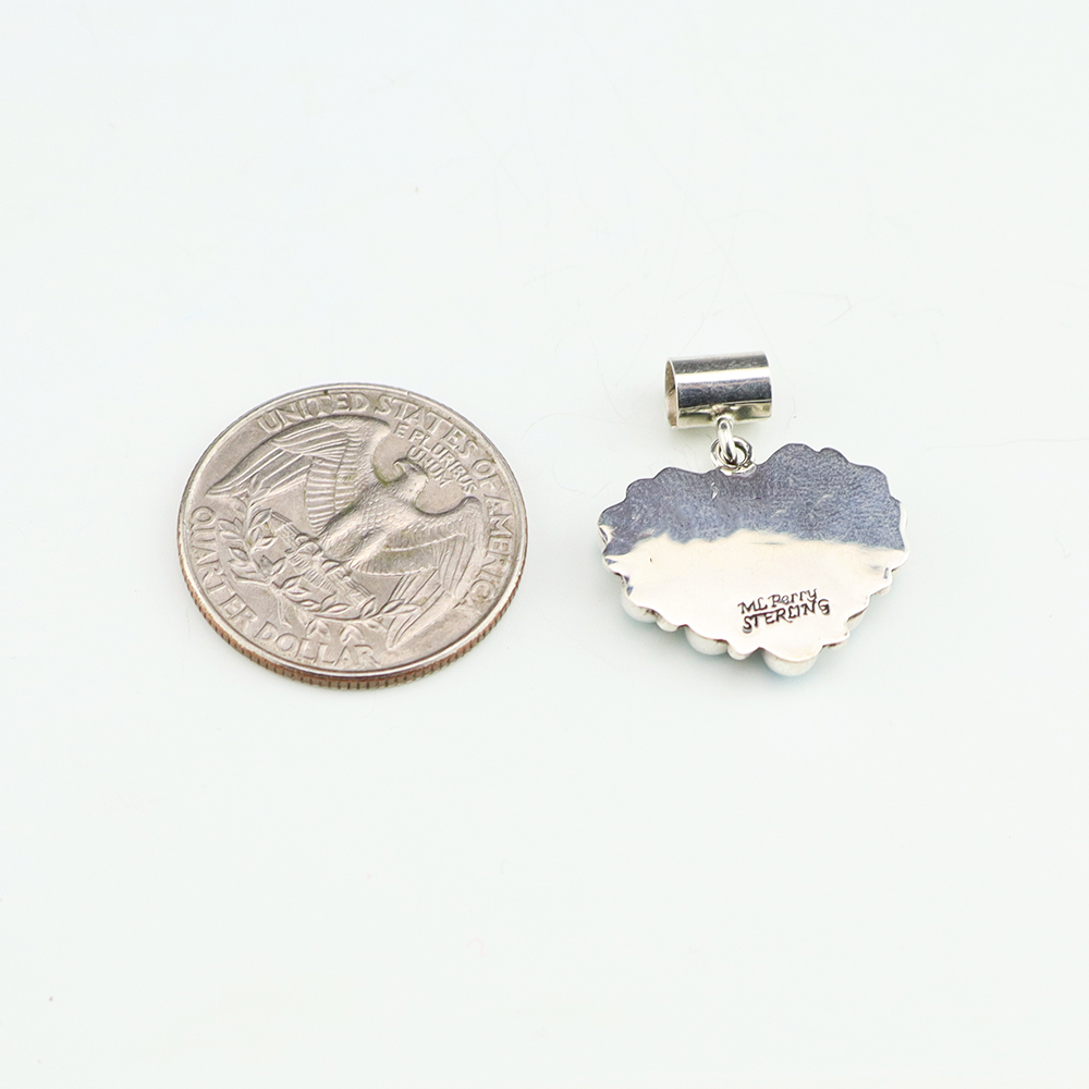 Zuni fetish carver Brian Yatsattie created this stunning seahorse pendant. Hand carved out of Mother of Pearl Shell with Turquoise inlaid eyes. Amazing detail is carved throughout the pedant. A wonderful addition to your Native American jewelry or fetish collection. Weighs 20 grams. 2 1/4” tall x 3/4” long x...