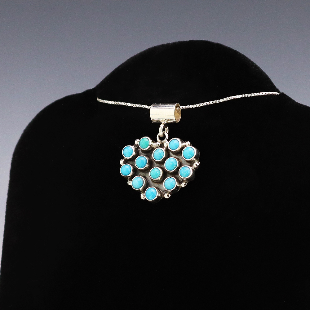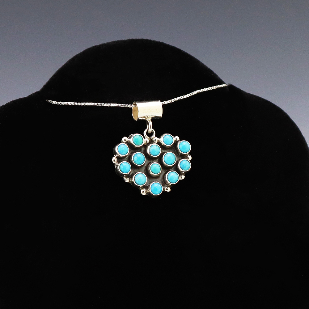 The Navajos began working with silver in the 19th century, and began making things like buckles, bridles, buttons, rings, canteens, hollow beads, earrings, crescent-shaped pendants (called “najas”), bracelets, crosses, powder chargers, tobacco canteens, and conchos (for belts). Their silversmithing skills has evolved and changed throughout the years, and in about 1880 Navajo silversmiths started to set turquoise in their silver work. Traditionally, Navajo artists worked with jewelry techniques like repousee and stamp work, but today they explored in other Native American jewelry making techniques like Zuni inlay work and Hopi overlay work.