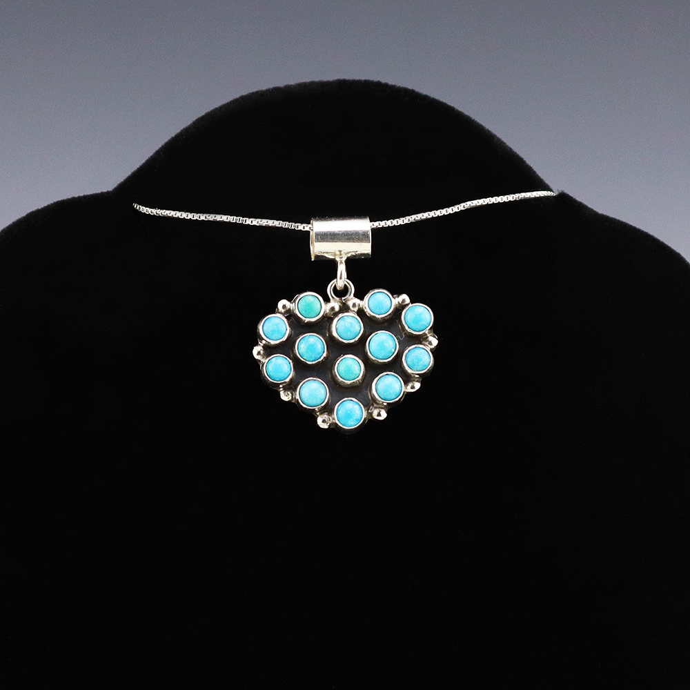 The Navajos began working with silver in the 19th century, and began making things like buckles, bridles, buttons, rings, canteens, hollow beads, earrings, crescent-shaped pendants (called “najas”), bracelets, crosses, powder chargers, tobacco canteens, and conchos (for belts). Their silversmithing skills has evolved and changed throughout the years, and in about 1880 Navajo silversmiths started to set turquoise in their silver work. Traditionally, Navajo artists worked with jewelry techniques like repousee and stamp work, but today they explored in other Native American jewelry making techniques like Zuni inlay work and Hopi overlay work.