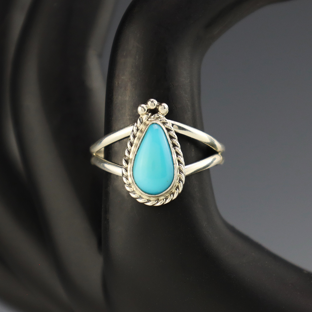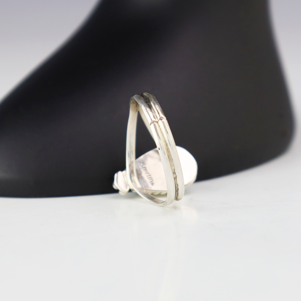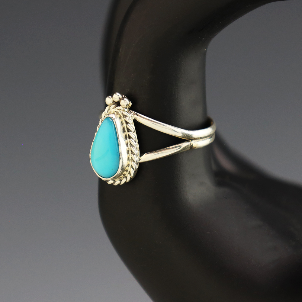 NATIVE AMERICAN TURQUOISE & JET RING BY NANCY & SHELDON WESTIKA 11 1/4
