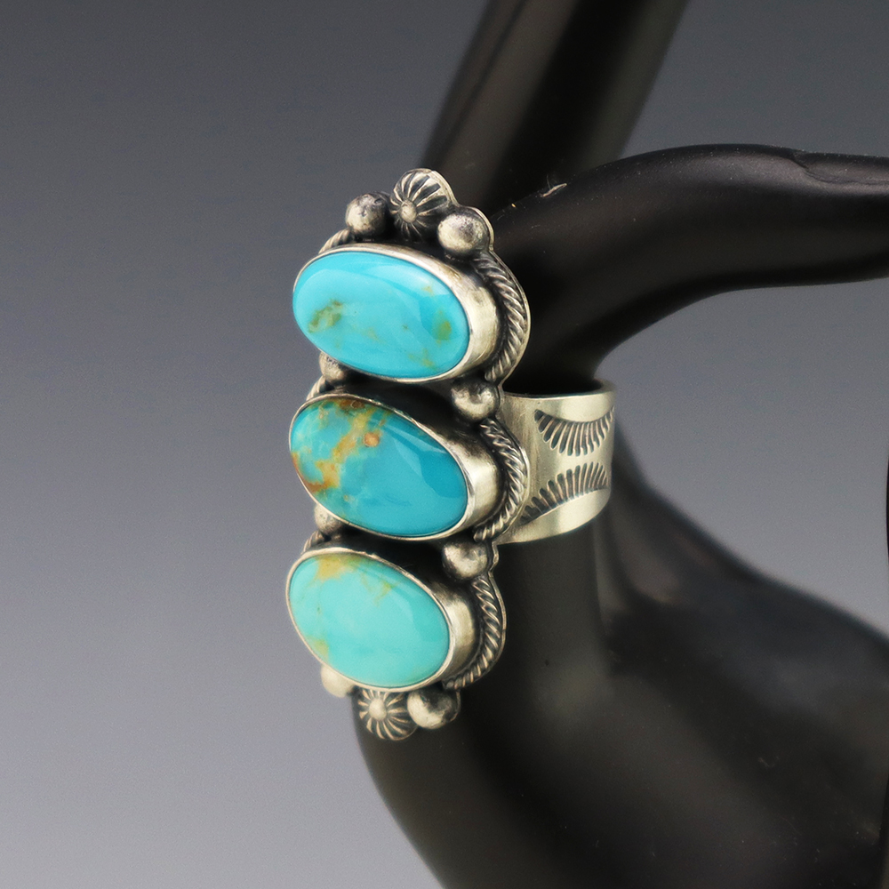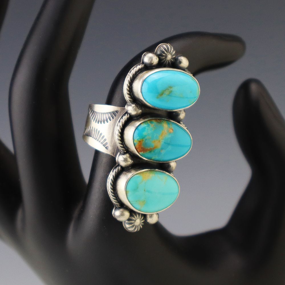 Around 1865, a Navajo Blacksmith Atsidi Sani who admired the silver adornments that the Spaniards and their horses had. Atsidi Sani got the Spaniards to teach him how to work with silver and began making silver conchos. This was the beginning of Navajo jewelry, and soon Atsidi taught his brother and many others how to silversmith. Traditionally, Navajo jewelers made silver jewelry with just stamp work and no stones. Today, they have expanded their jewelry making techniques and they create beautiful jewelry using sand casting, stone inlay, and overlay.