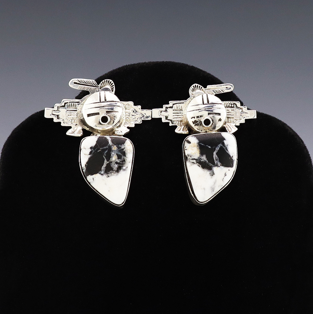 Outstanding sterling silver earrings with Mother of Pearl Shell and Turquoise inlay. Hand crafted by Zuni jewelry makers, Nancy and Sheldon Westika. The Westikas have been making jewelry since the 1970’s and they are known for their fine inlay work. Weighs 6 grams. Signed 7/8” wide x 7/8” tall 1 ...