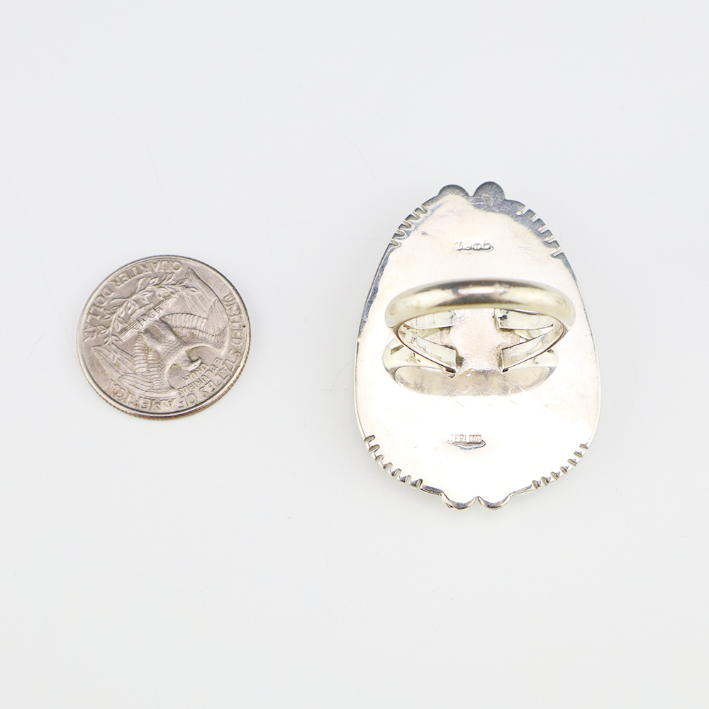 NATIVE AMERICAN TURQUOISE & JET RING BY NANCY & SHELDON WESTIKA 11 1/4