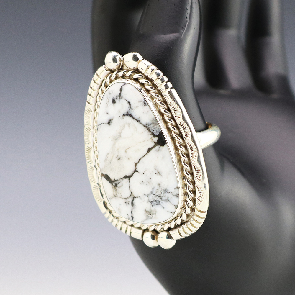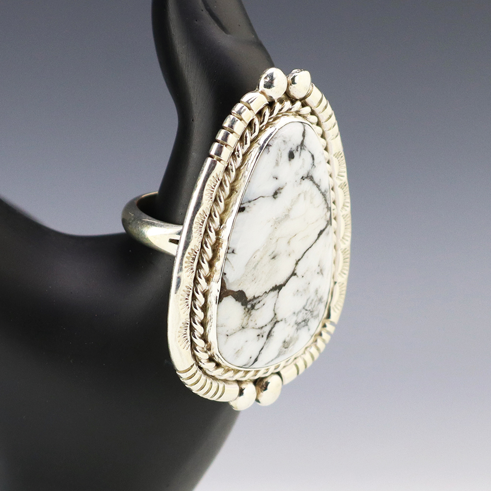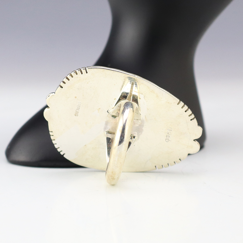 Zuni jewelry makers, Nancy and Sheldon Westika hand crafted this magnificent ring. Made out of sterling silver and inlaid with Kingman Turquoise and Jet. Zuni artists are known for their lapidary work. The Westikas have been making jewelry since the 1970’s and they are known for their fine inlay work. ...