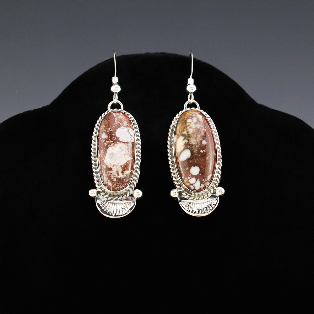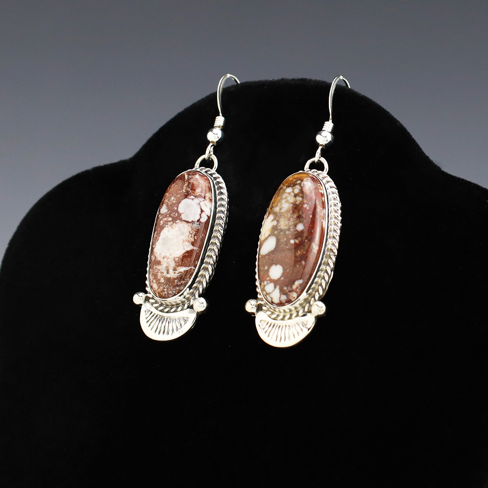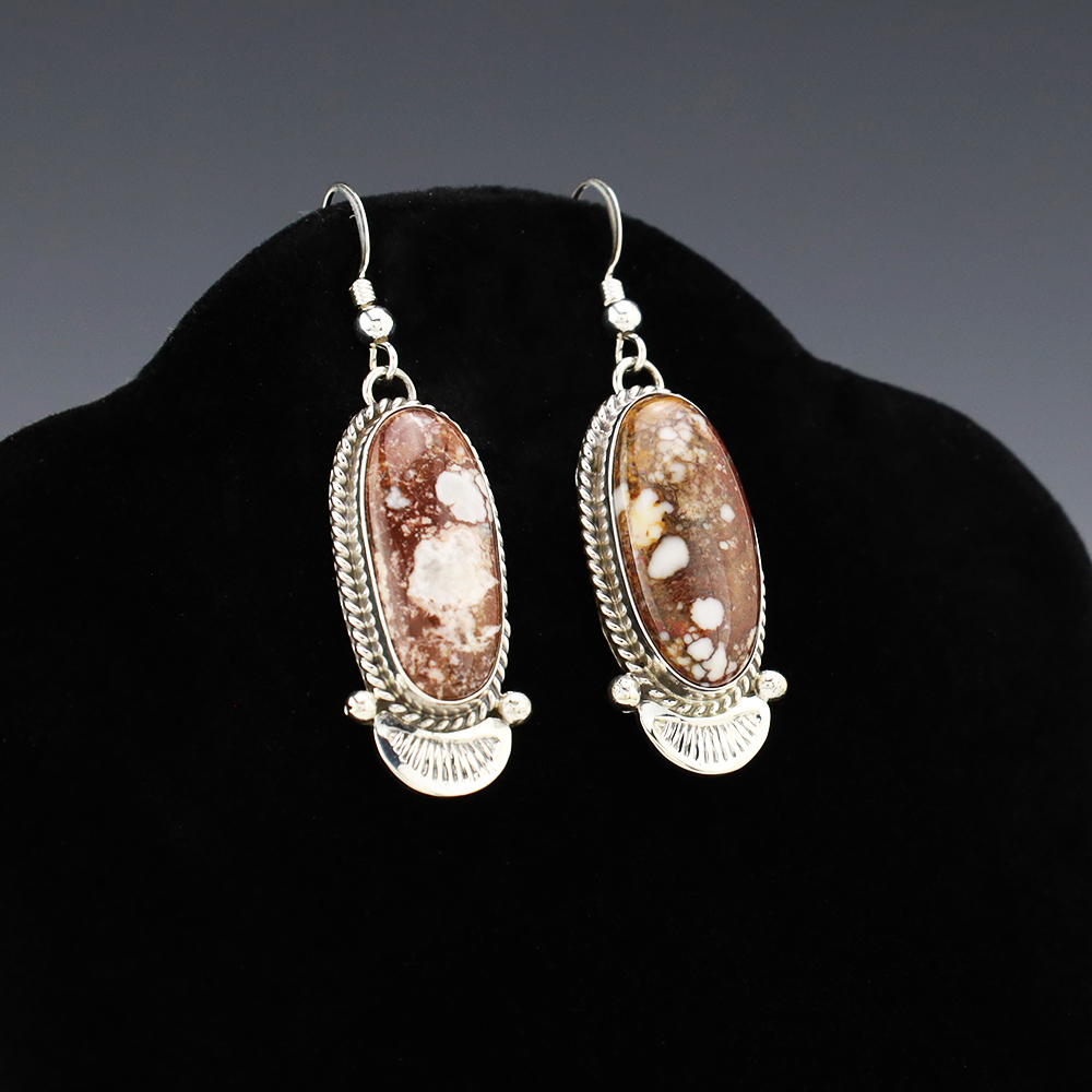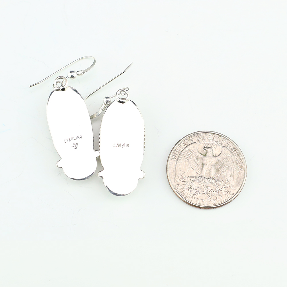 Lovely earrings hand made out of sterling silver and Wild Horse. Hand made by Navajo silversmith Carol Wylie. These fabulous earrings will become a versatile accessory in your jewelry collection. Weighs 10 grams. Signed.