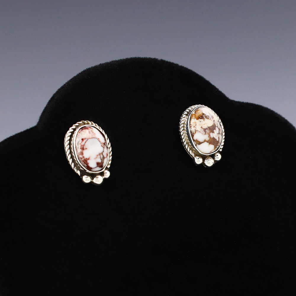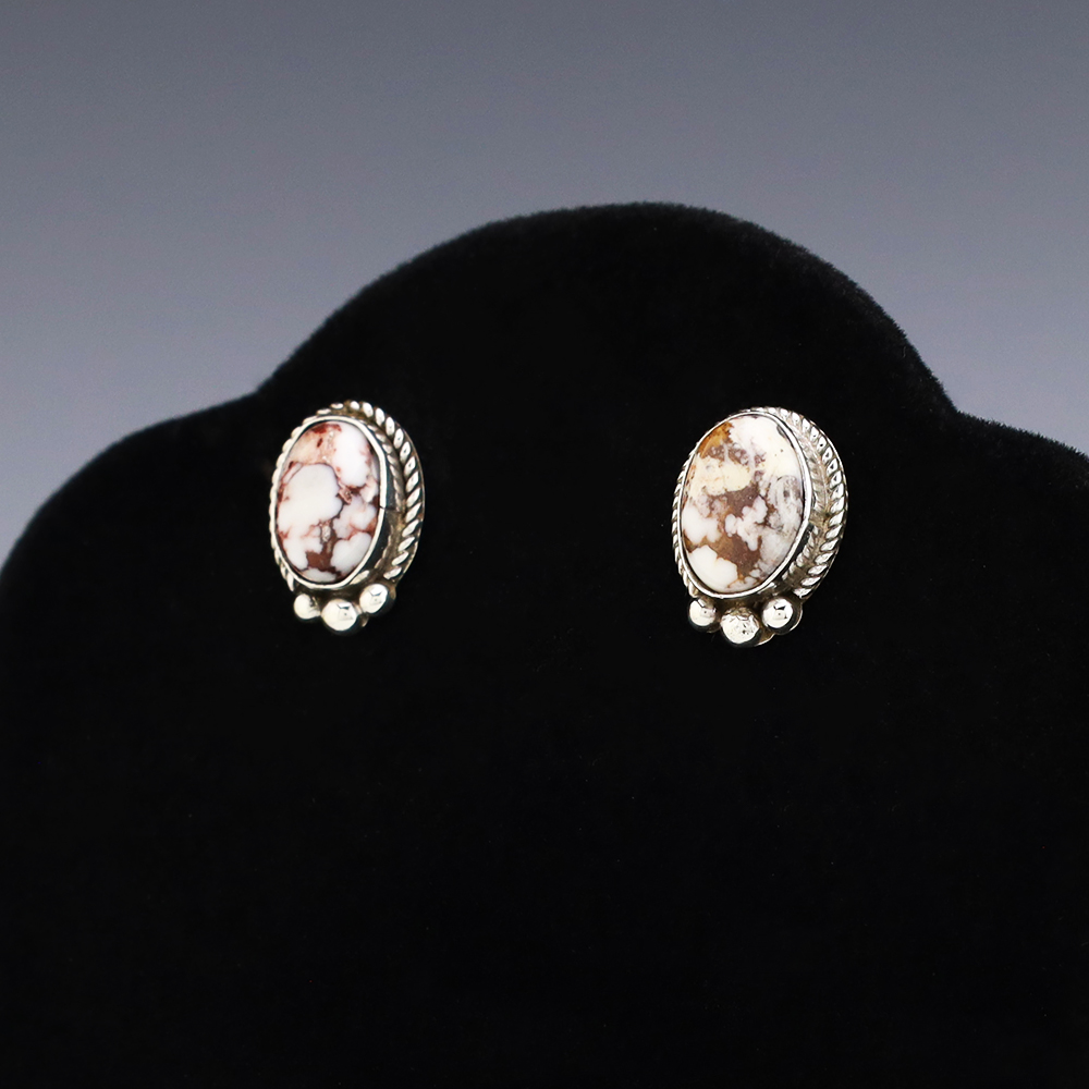 Lovely earrings hand made out of sterling silver and Wild Horse. Hand made by Navajo silversmith Lee Sandoval These fabulous earrings will become a versatile accessory in your jewelry collection. Weighs 4 grams. Signed.