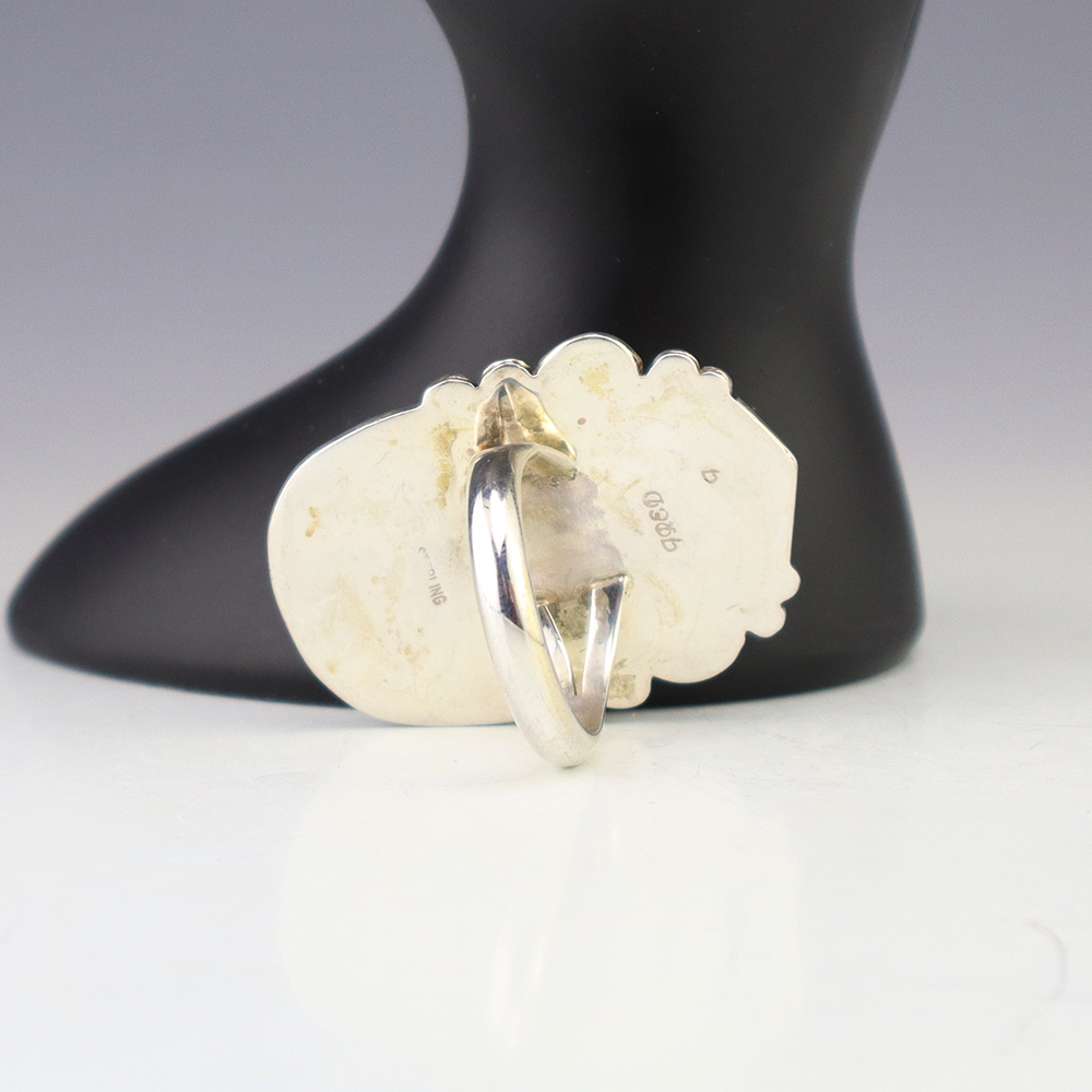 Amazing inlay work! Zuni jewelry makers, Nancy and Sheldon Westika created this magnificent ring. Made out of sterling silver and inlaid with Kingman Turquoise and Jet. Zuni artists are known for their lapidary work. The Westikas have been making jewelry since the 1970’s and they are known for their fine...