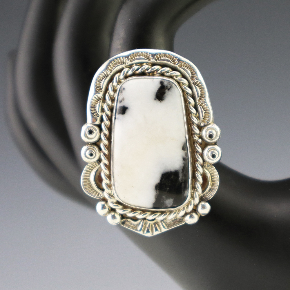 NATIVE AMERICAN TURQUOISE & JET RING BY NANCY & SHELDON WESTIKA 11 1/4
