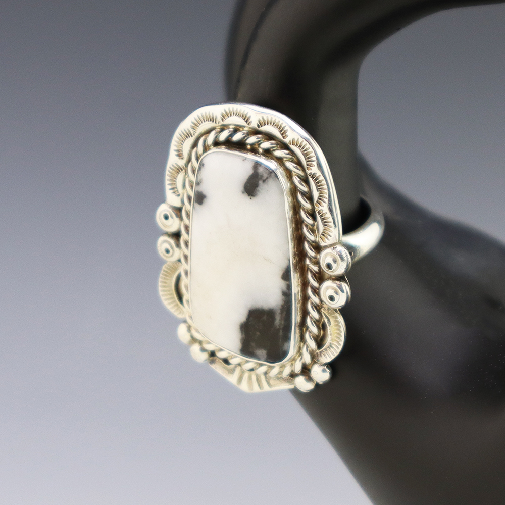 Around 1865, a Navajo Blacksmith Atsidi Sani who admired the silver adornments that the Spaniards and their horses had. Atsidi Sani got the Spaniards to teach him how to work with silver and began making silver conchos. This was the beginning of Navajo jewelry, and soon Atsidi taught his brother and many others how to silversmith. Traditionally, Navajo jewelers made silver jewelry with just stamp work and no stones. Today, they have expanded their jewelry making techniques and they create beautiful jewelry using sand casting, stone inlay, and overlay.