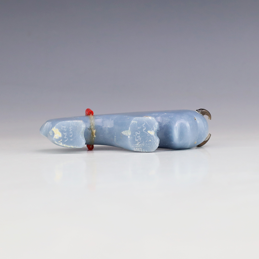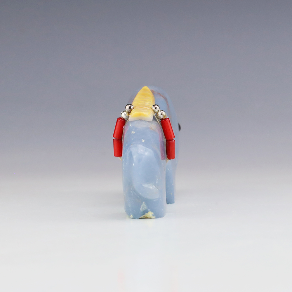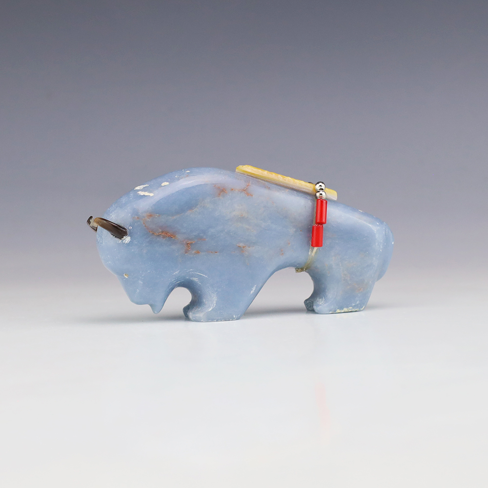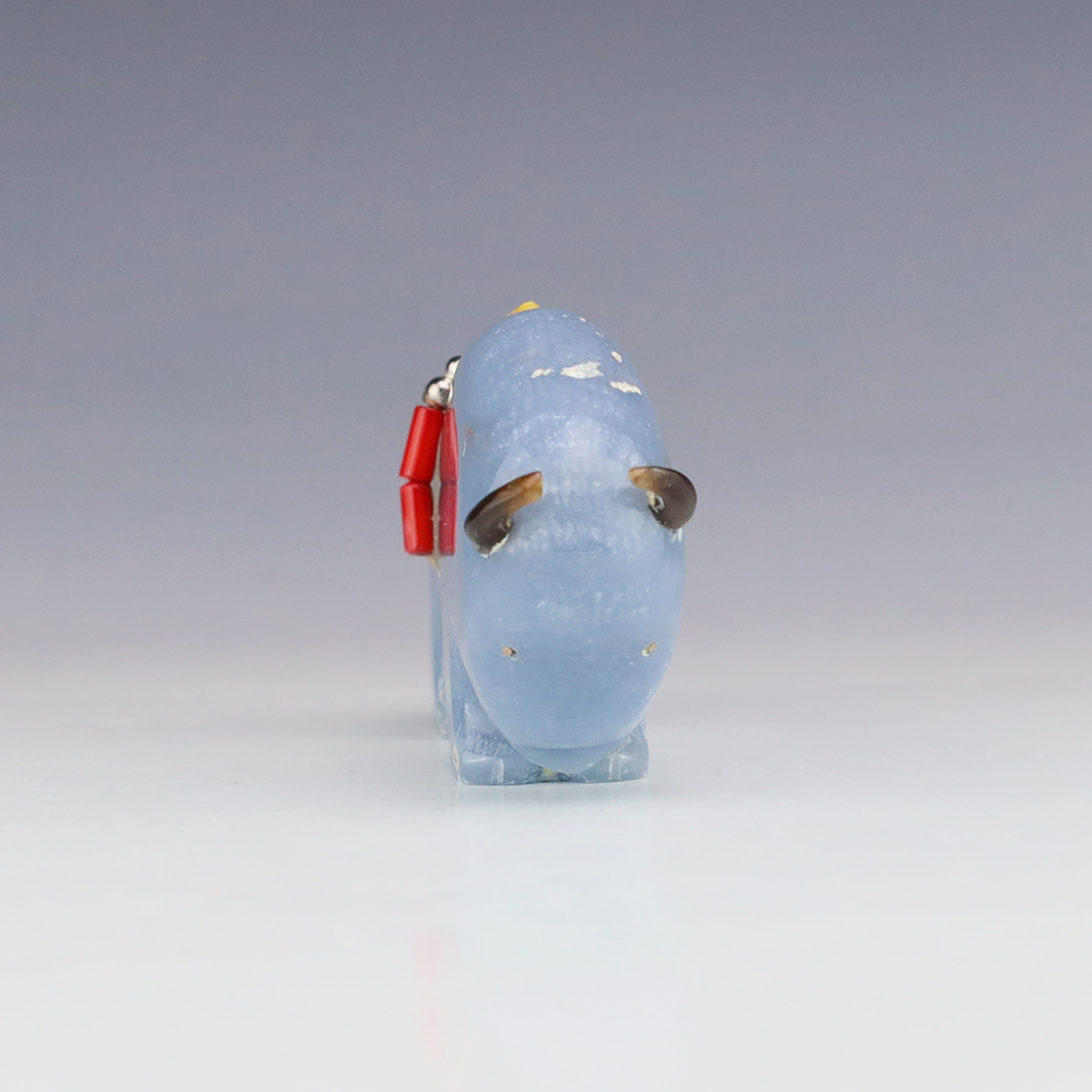 Zuni fetish artist Todd Westika hand carved this magnificent buffalo fetish out of Angelite and is bundled with Turquoise, Coral, and silver. Bold form that gives this buffalo fetish a sense of strength and endurance. Signed