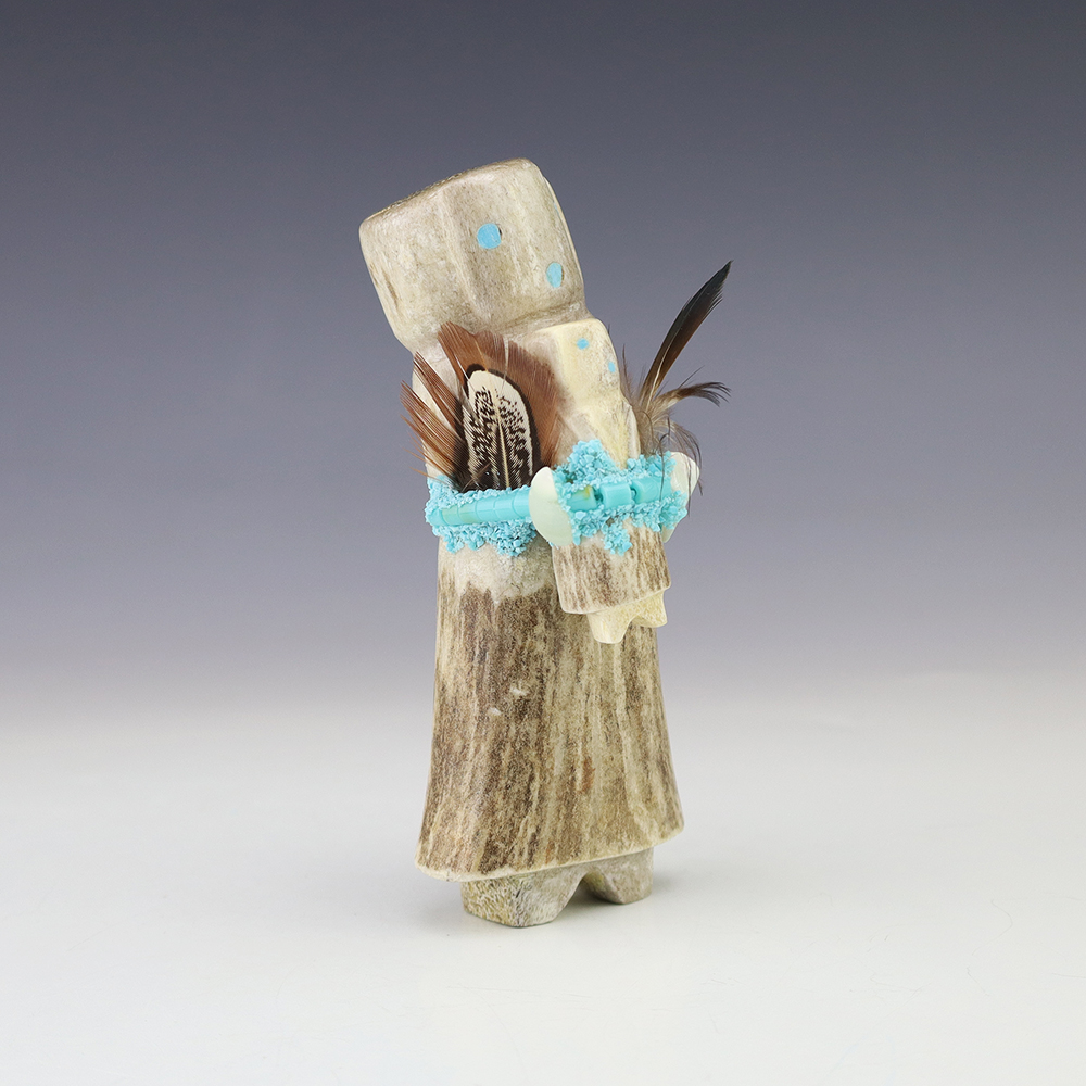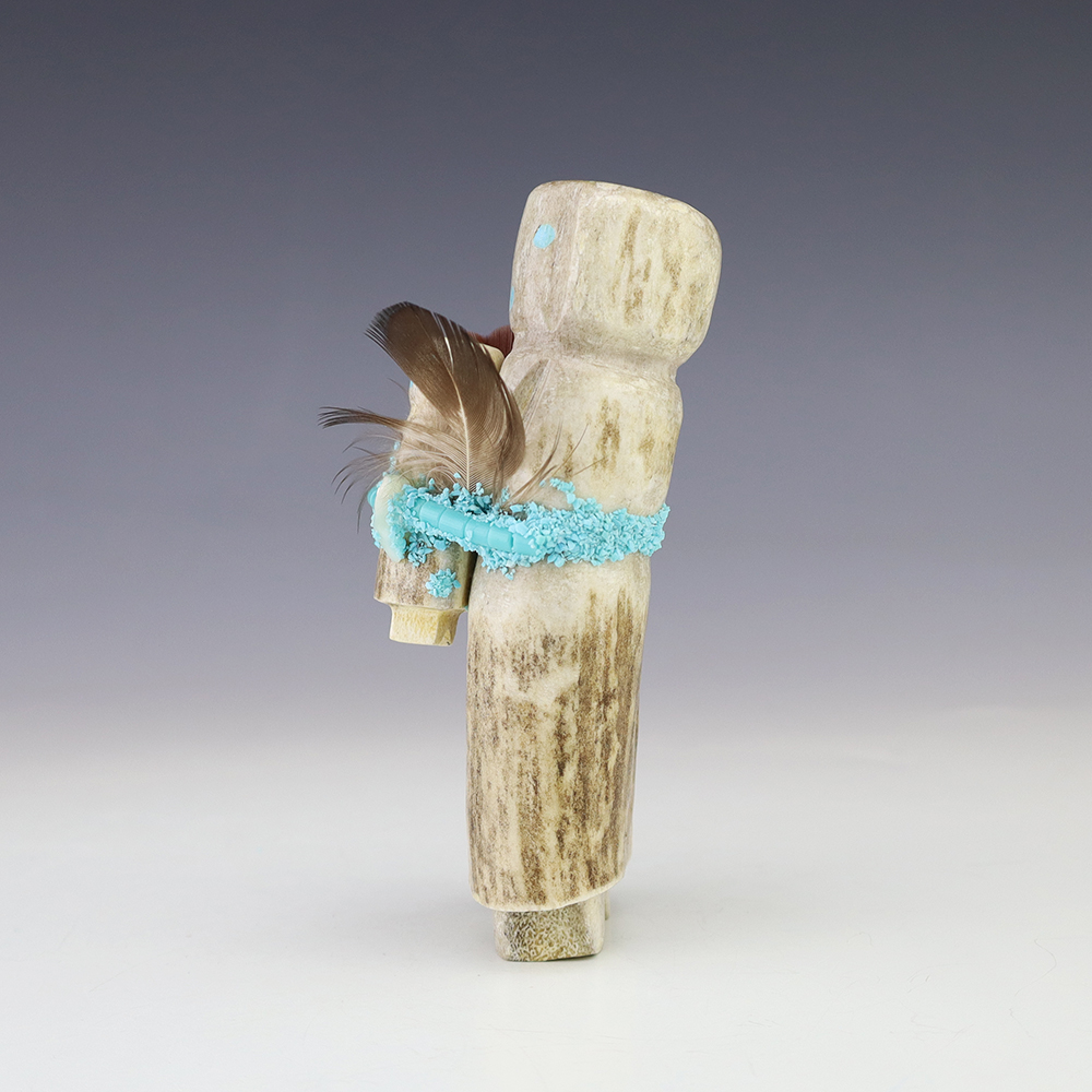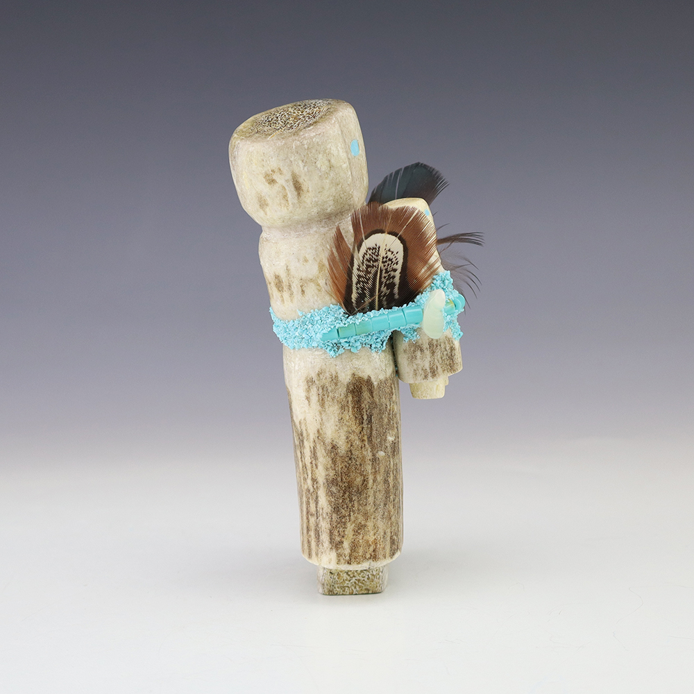 Zuni artist Marvelita Phillps hand carved this beautiful Alter Doll. Made out of antler and Turquoise. This carving would make a great addition to your Native American or Zuni fetish collection. Signed