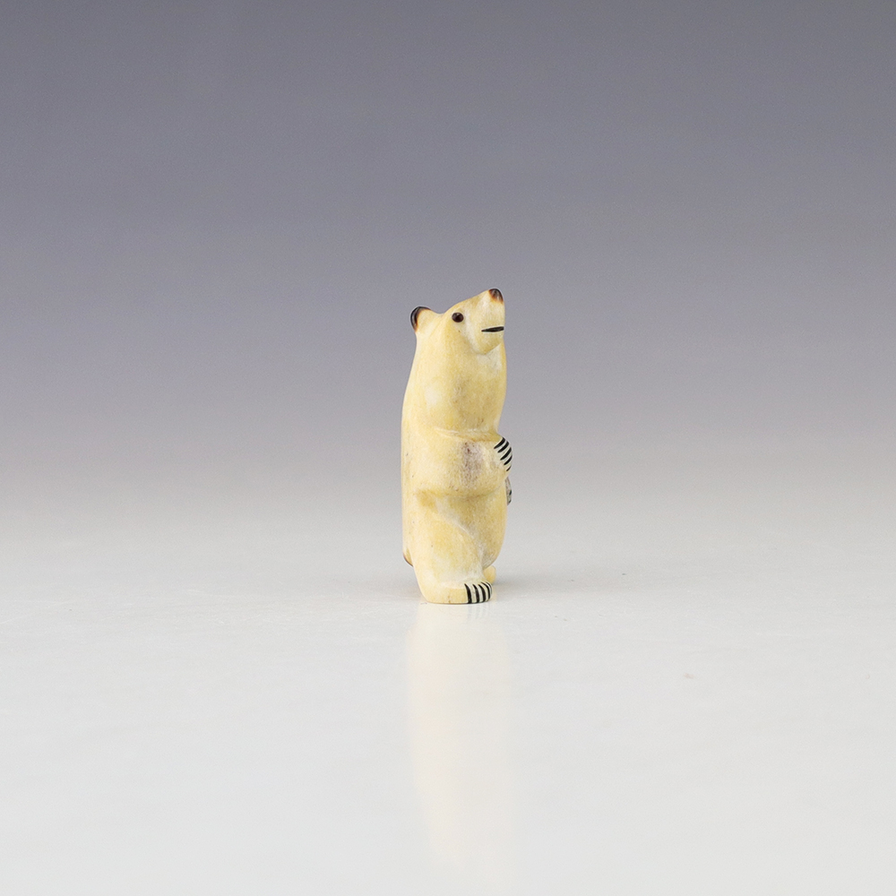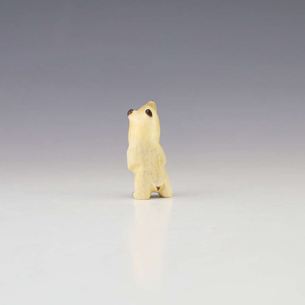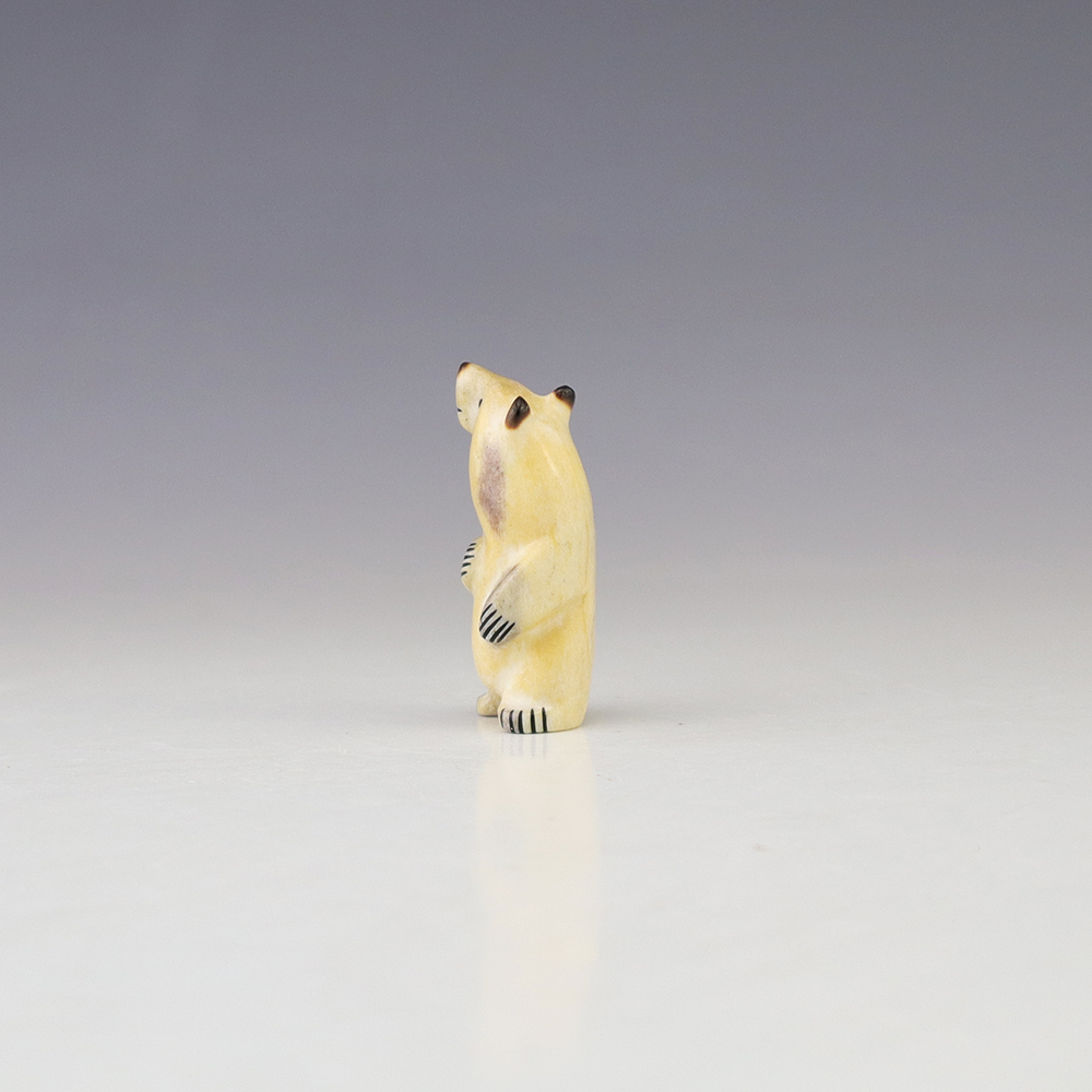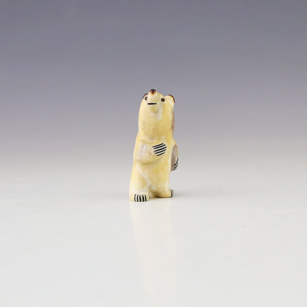 The Bear is the Guardian fetish of the West, and represents healing and strength. This wonderfully carved bear fetish is made out of Antler. Zuni artist Gabe Sice is known for this outstanding bears. This carving would make a great addition to your Native American art or Zuni fetish collection. Signed
