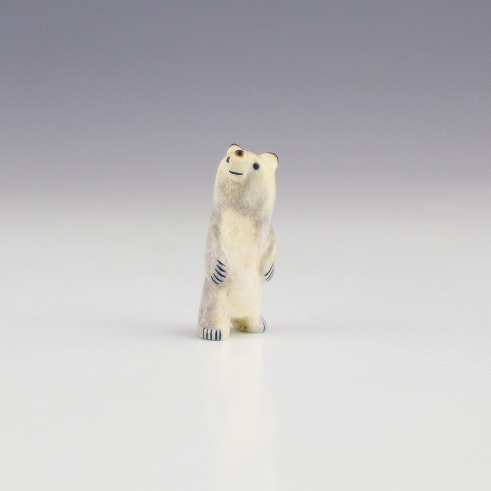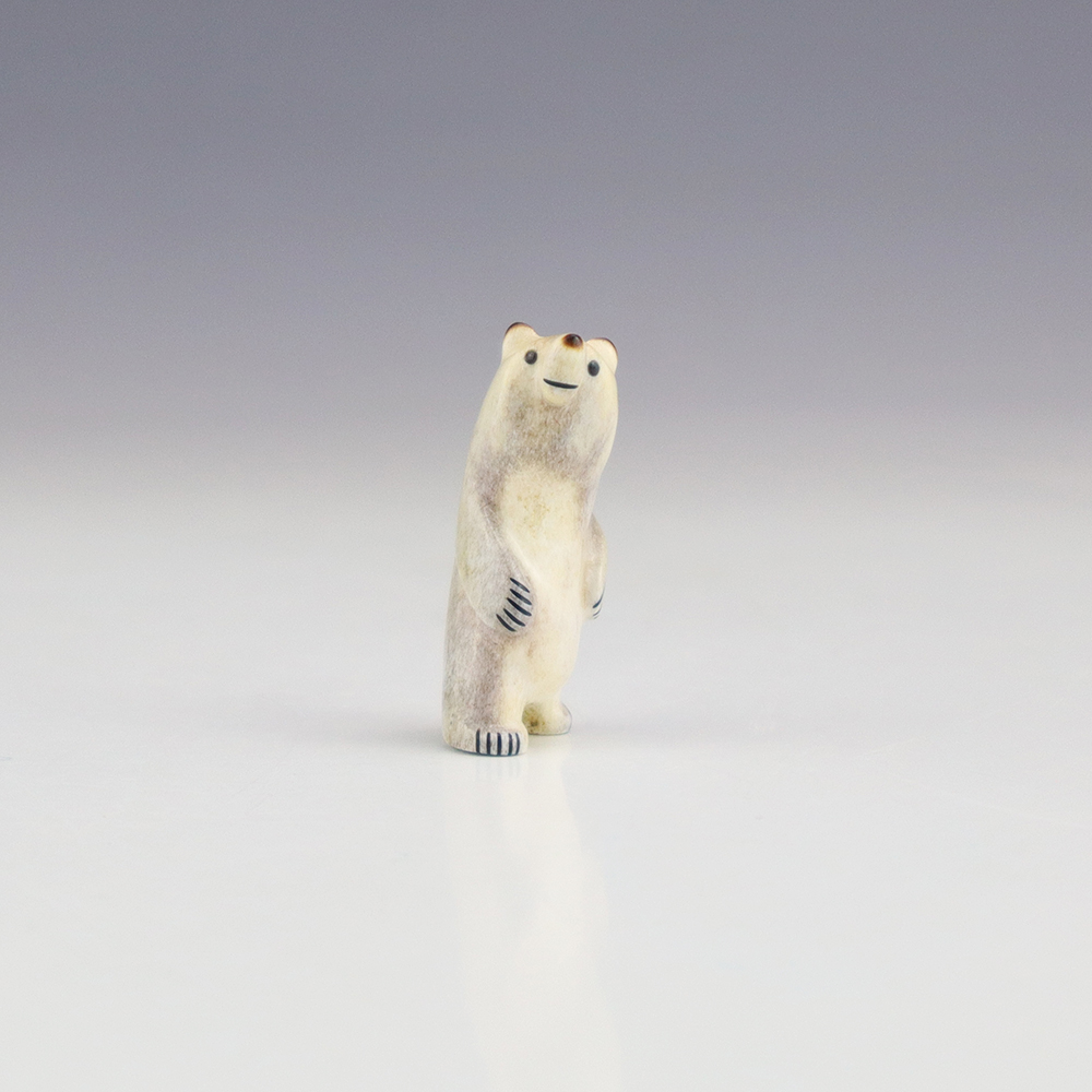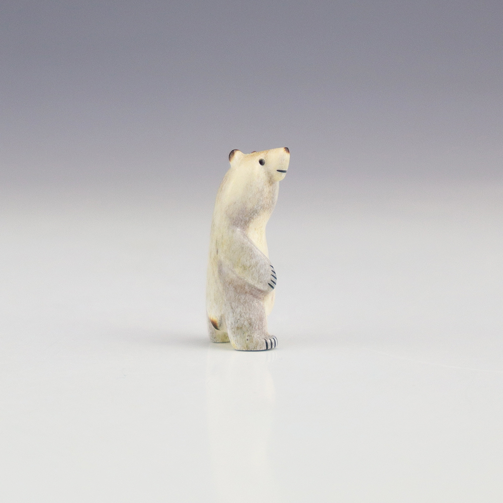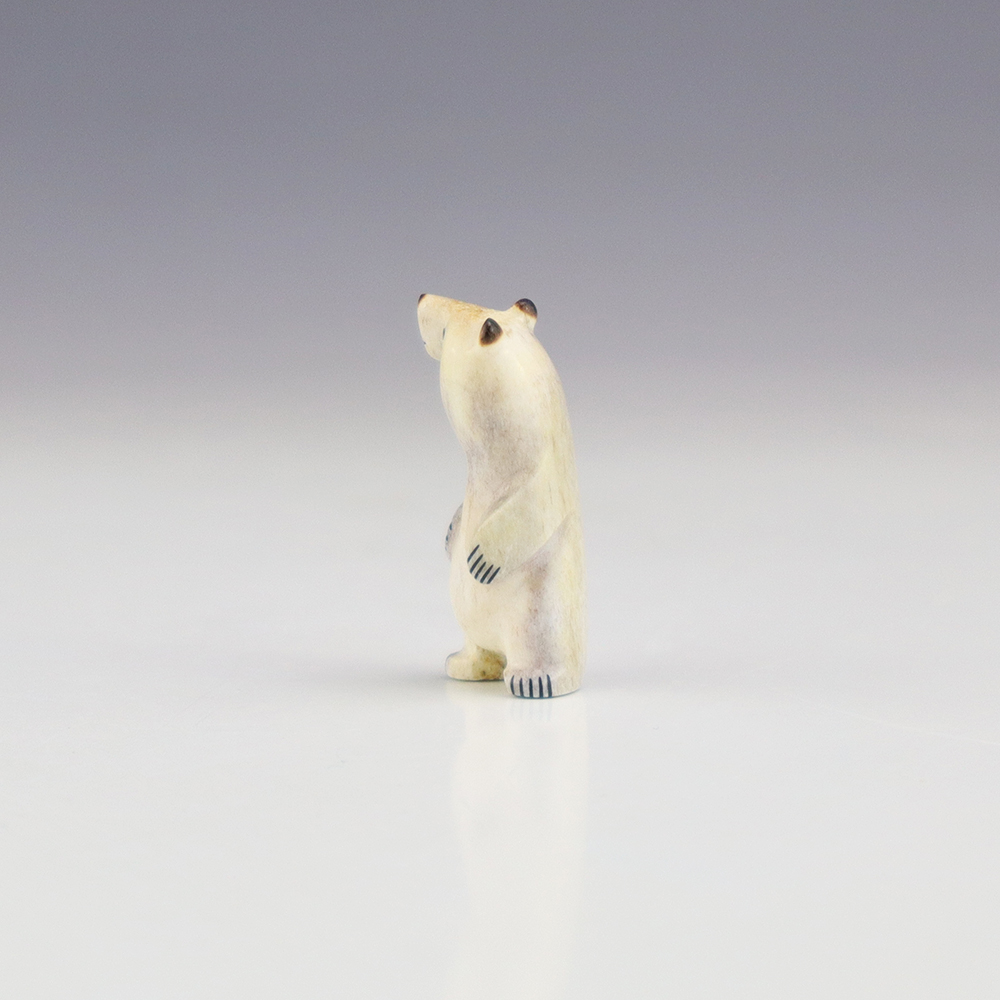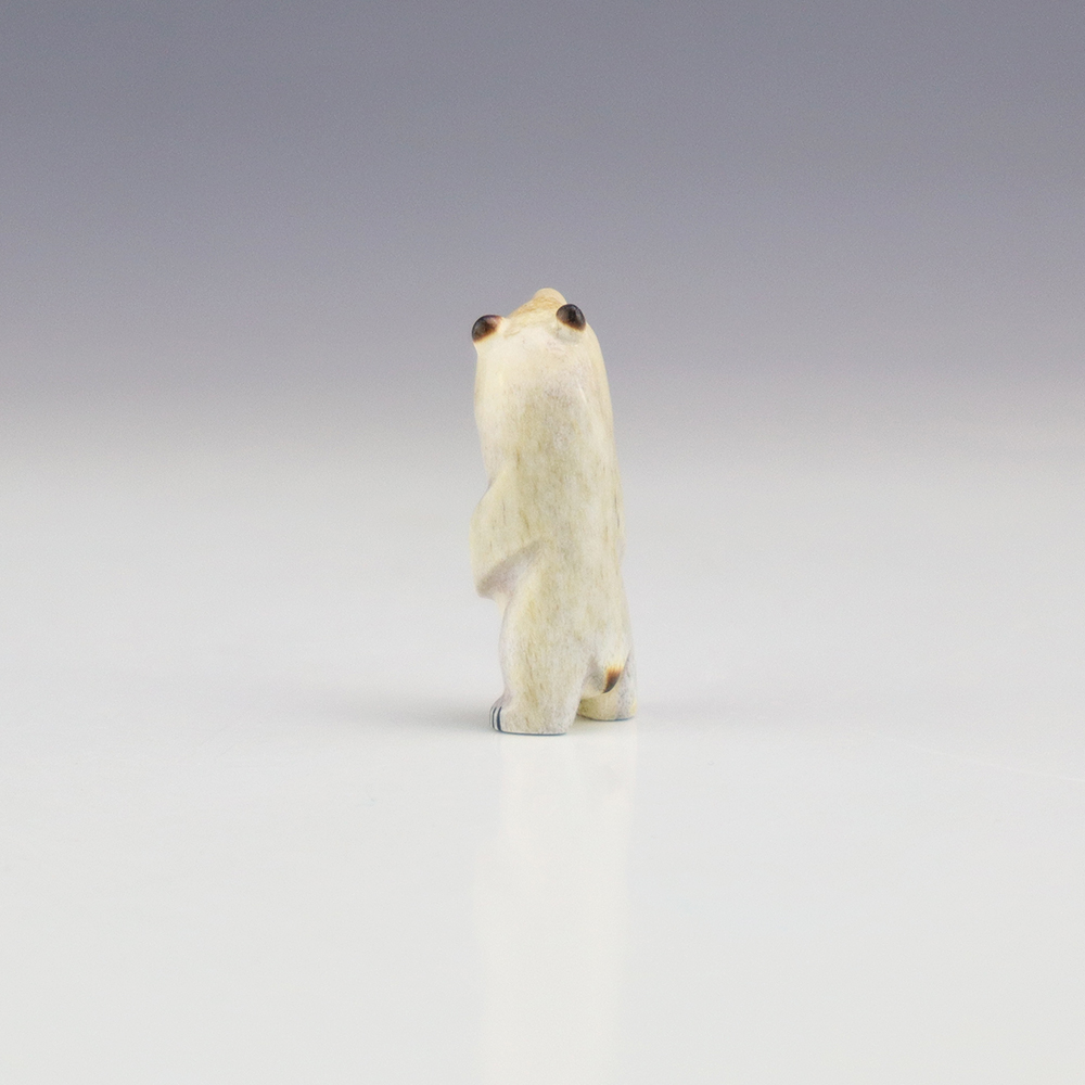 The Bear is the Guardian fetish of the West, and represents healing and strength. This wonderfully carved bear fetish is made out of Antler. Zuni artist Gabe Sice is known for this outstanding bears. This carving would make a great addition to your Native American art or Zuni fetish collection. Signed