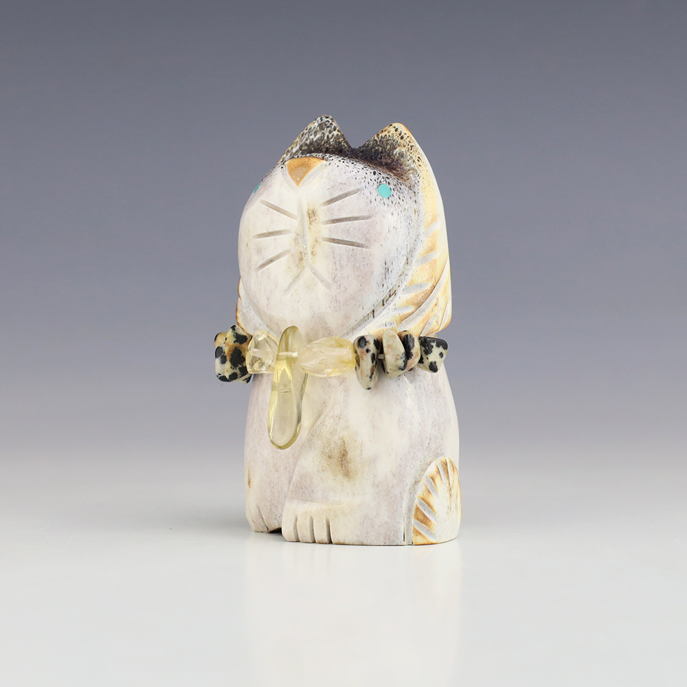 Zuni fetishes are carvings made from various materials by the Zuni people. Traditionally, fetishes served a ceremonial purpose for their creators and they represented animals and figures that were part of their culture. Today, as a form of Native American Art, they are sold to collectors worldwide. With a myriad of materials like turquoise, shell, jet, marble, serpentine, and much more, Zuni fetish carvers are able to create carvings in a style of their own.